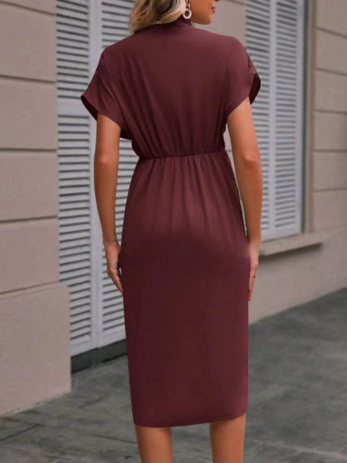 This Tie Back Shirring Dress with Pockets combines style and functionality for a versatile wardrobe staple. Featuring shirring on the bodice, this dress offers a flattering and comfortable silhouette. The addition of pockets provides convenience and practicality, perfect for carrying small essentials. Whether dressed up with heels or styled casually with sandals, this dress is perfect for various occasions. Elevate your look with this effortlessly chic and on-trend dress that seamlessly blends fashion and comfort.