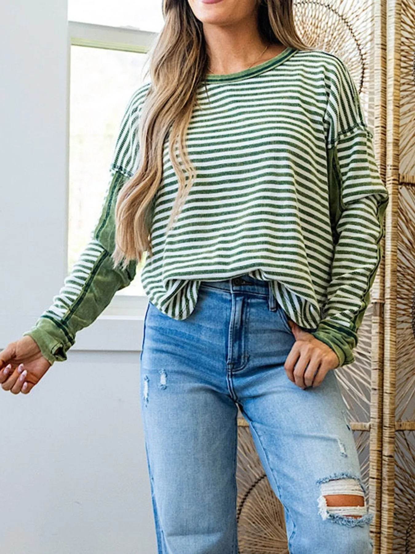 The Exposed Seam Brushed Round Neck Sweater is a cozy and stylish knitwear piece that features exposed seams for a unique design detail. The brushed fabric provides a soft and comfortable feel, making it perfect for staying warm and chic during colder weather. This sweater is versatile and can be easily paired with jeans, leggings, or skirts for a fashionable look.