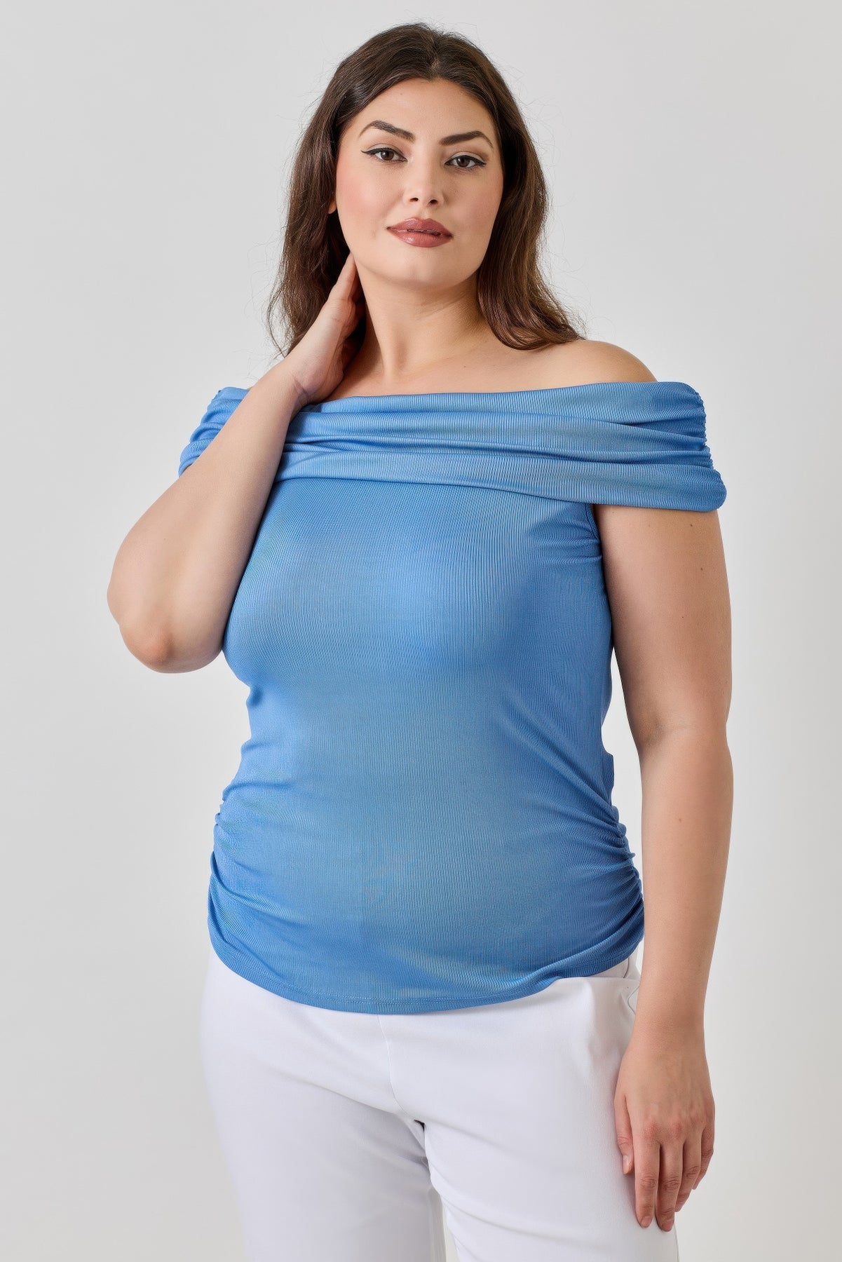 This dress stands out with its v-neck, cinched side detail, and vibrant floral print, offering a perfect blend of style and comfort for plus-size fashion.