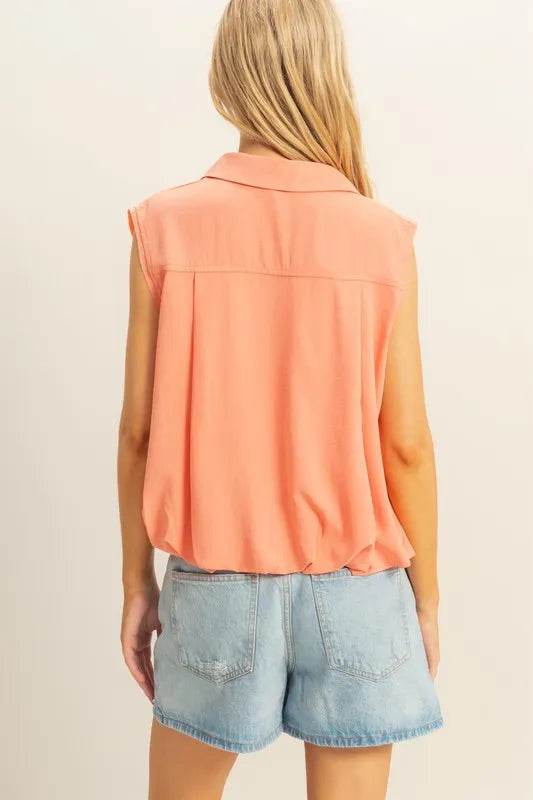 The buttoned front sleeveless collar top is a classic and stylish piece for your wardrobe. The button detailing on the front adds a touch of sophistication, while the sleeveless design is perfect for warm weather. The collar gives the top a polished and structured look, making it a versatile and timeless option for both casual and dressy occasions.