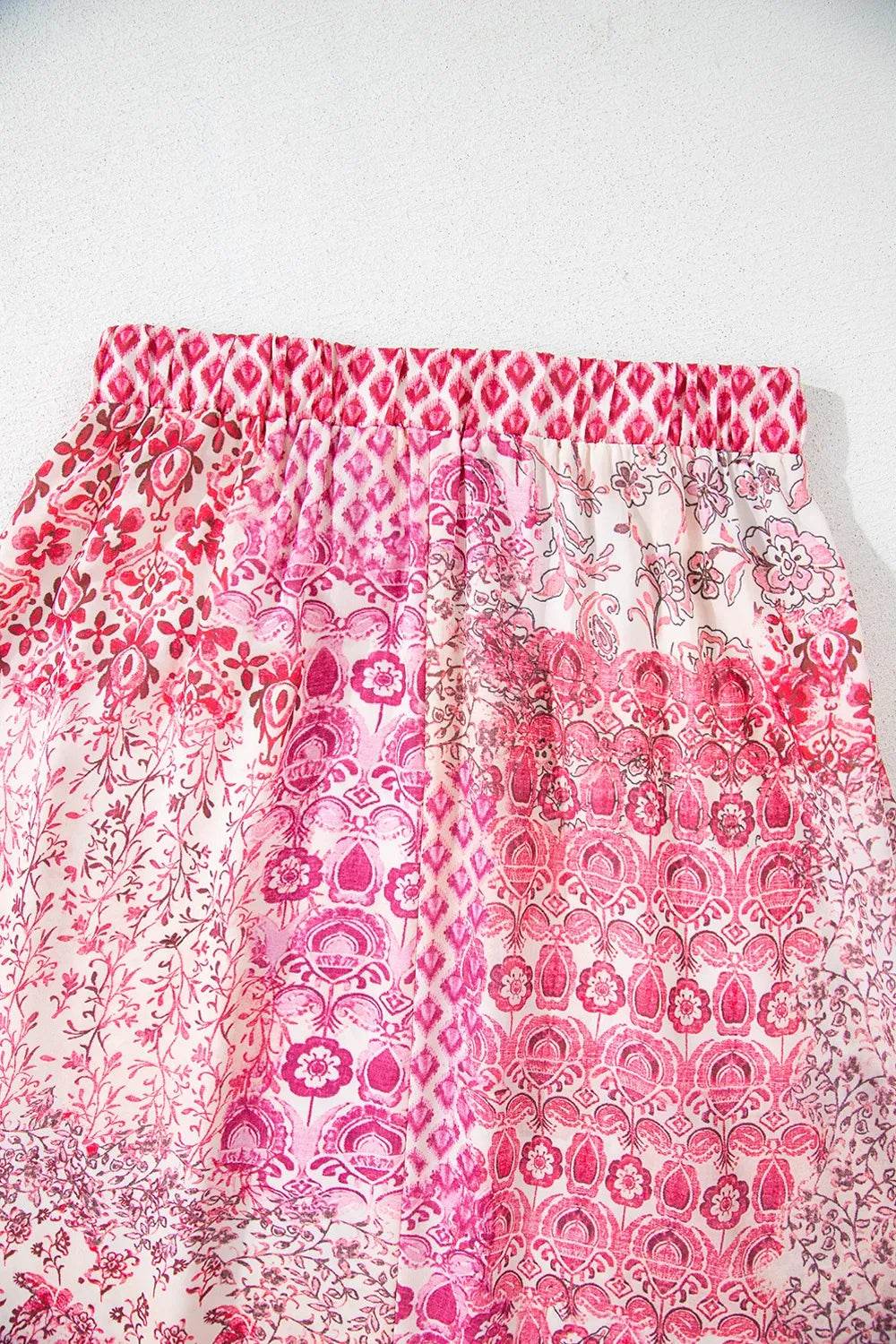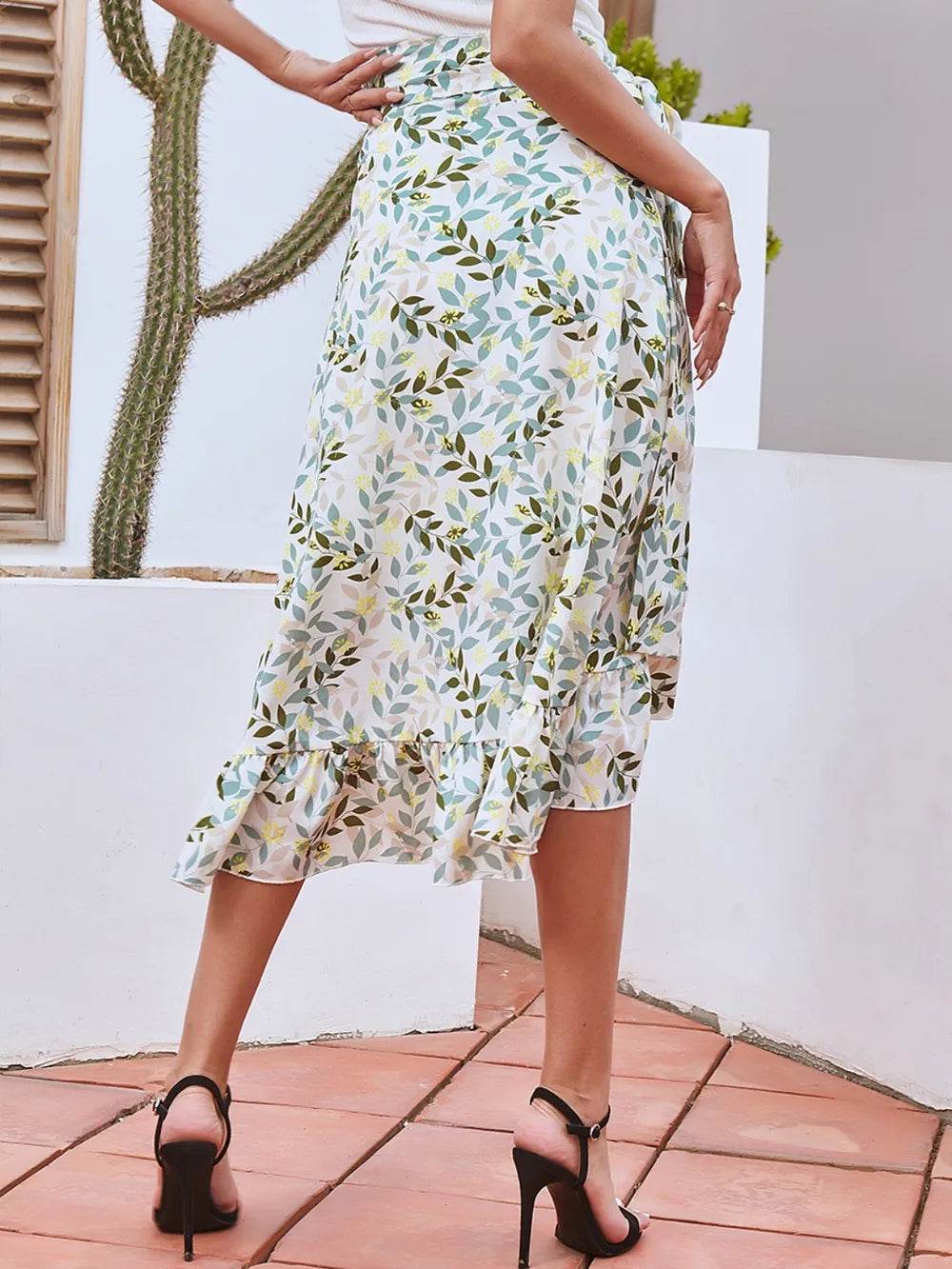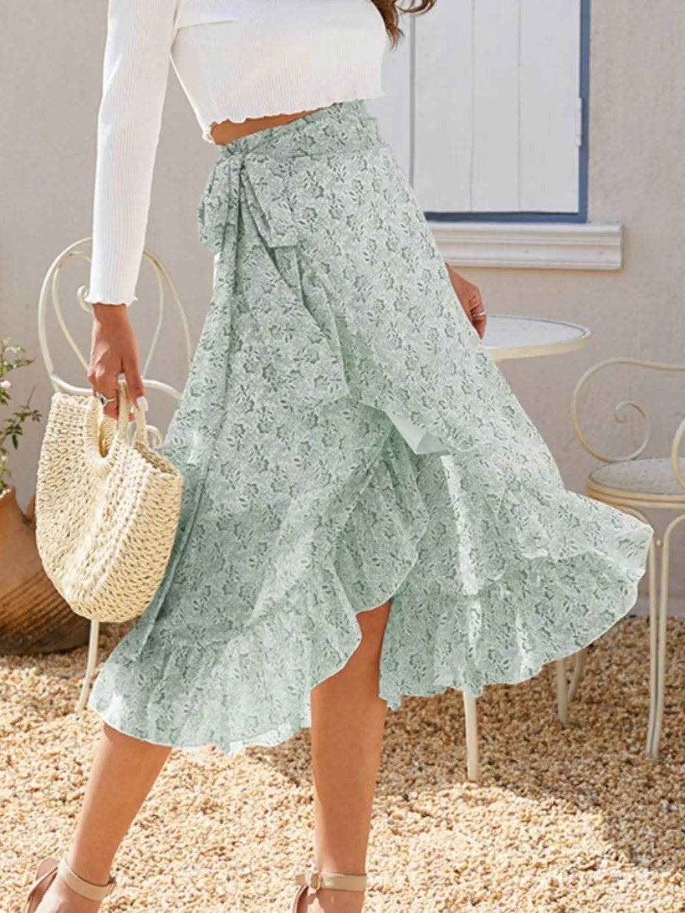 The Flower Print Elastic Waist Tiered Skirt is a beautiful and versatile piece for your wardrobe. The floral print adds a touch of femininity and elegance to the design. With an elastic waistband, this skirt offers a comfortable and flexible fit. The tiered layers create a flowy and romantic silhouette that is perfect for a bohemian look. Pair it with a simple top and sandals for a casual day out or dress it up with heels and a blouse for a more formal ensemble.
