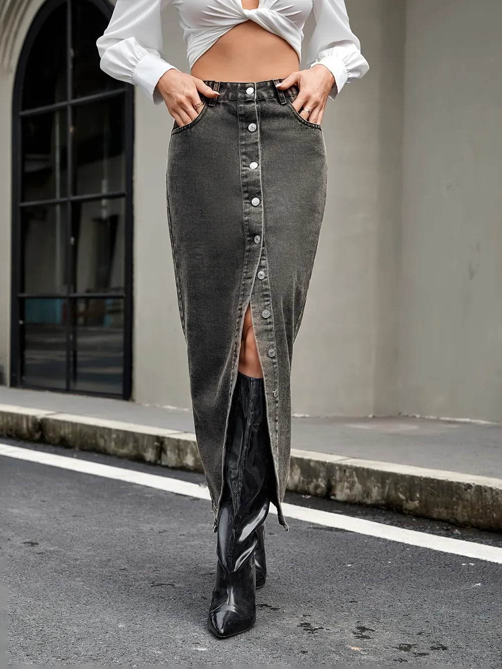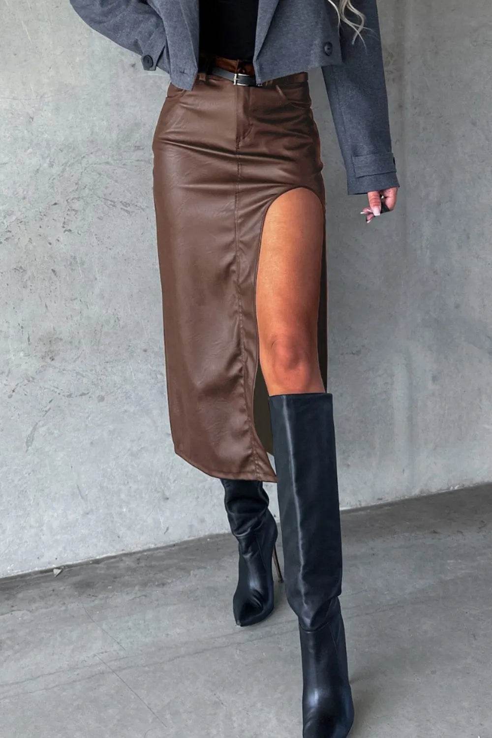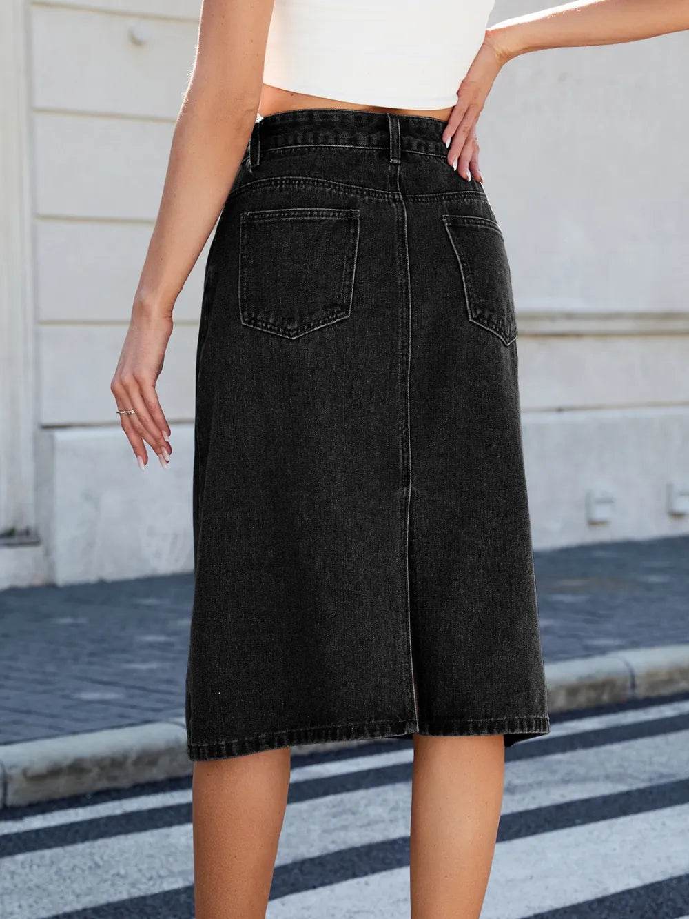 The Side Slit Satin Midi Skirt is a luxurious and elegant piece that adds a touch of sophistication to any outfit. Made from silky satin fabric, this skirt drapes beautifully and provides a stylish sheen. The side slit detail adds a hint of allure and movement to the design, making it perfect for both formal events and special occasions. Pair it with a fitted top and heels for a polished and chic look that is sure to turn heads.