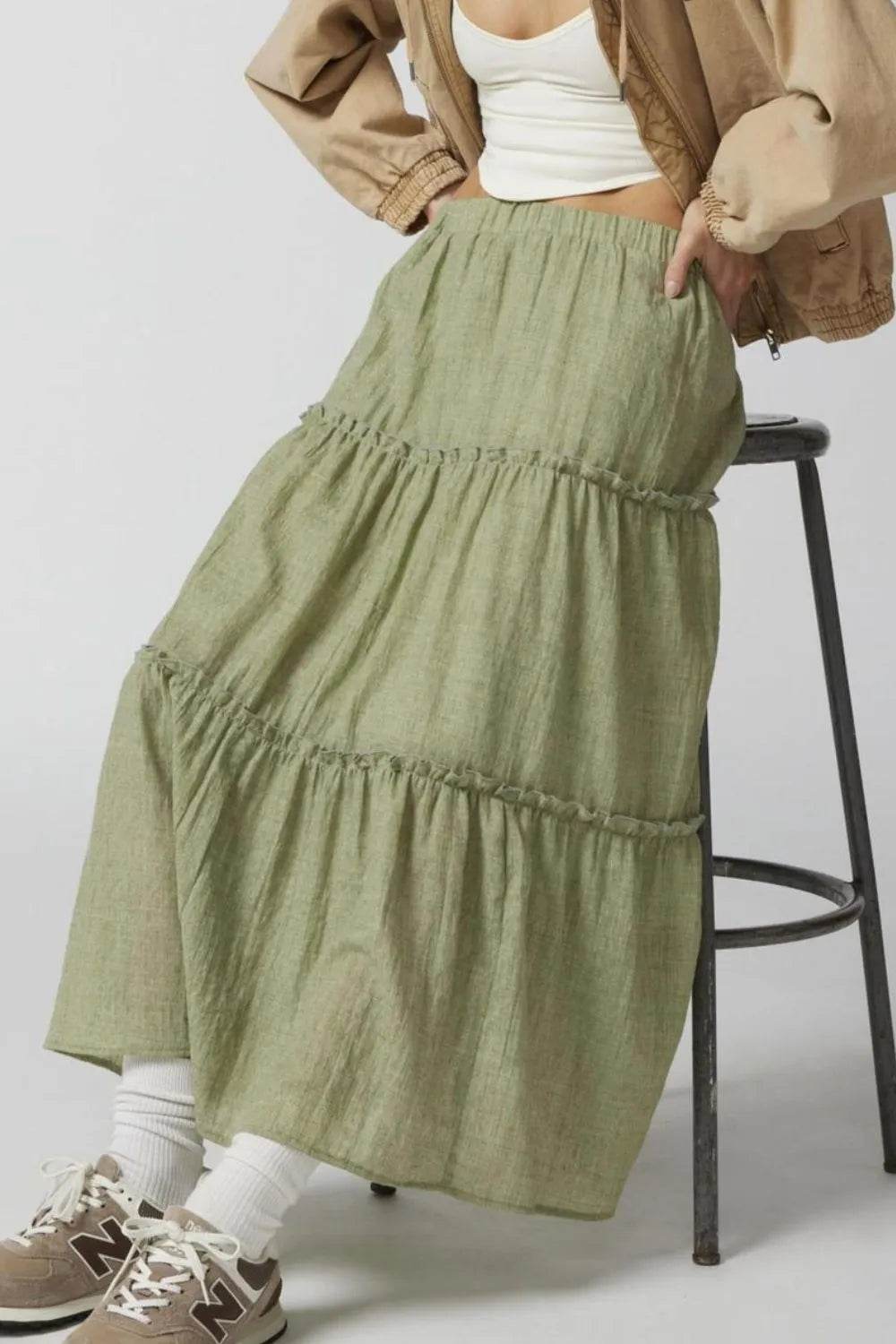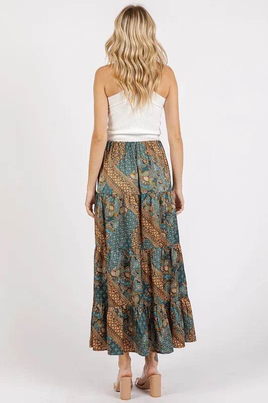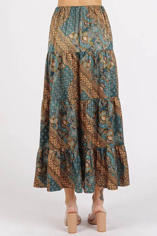 The Printed Maxi Skirt is a versatile and stylish addition to any wardrobe. Featuring a bold and eye-catching print, this skirt is perfect for adding a pop of color to your outfit. The maxi length provides a flowy and flattering silhouette, making it a great choice for both casual and dressy occasions. Pair it with a simple top and sandals for a chic summer look, or dress it up with a blouse and heels for a more formal ensemble.