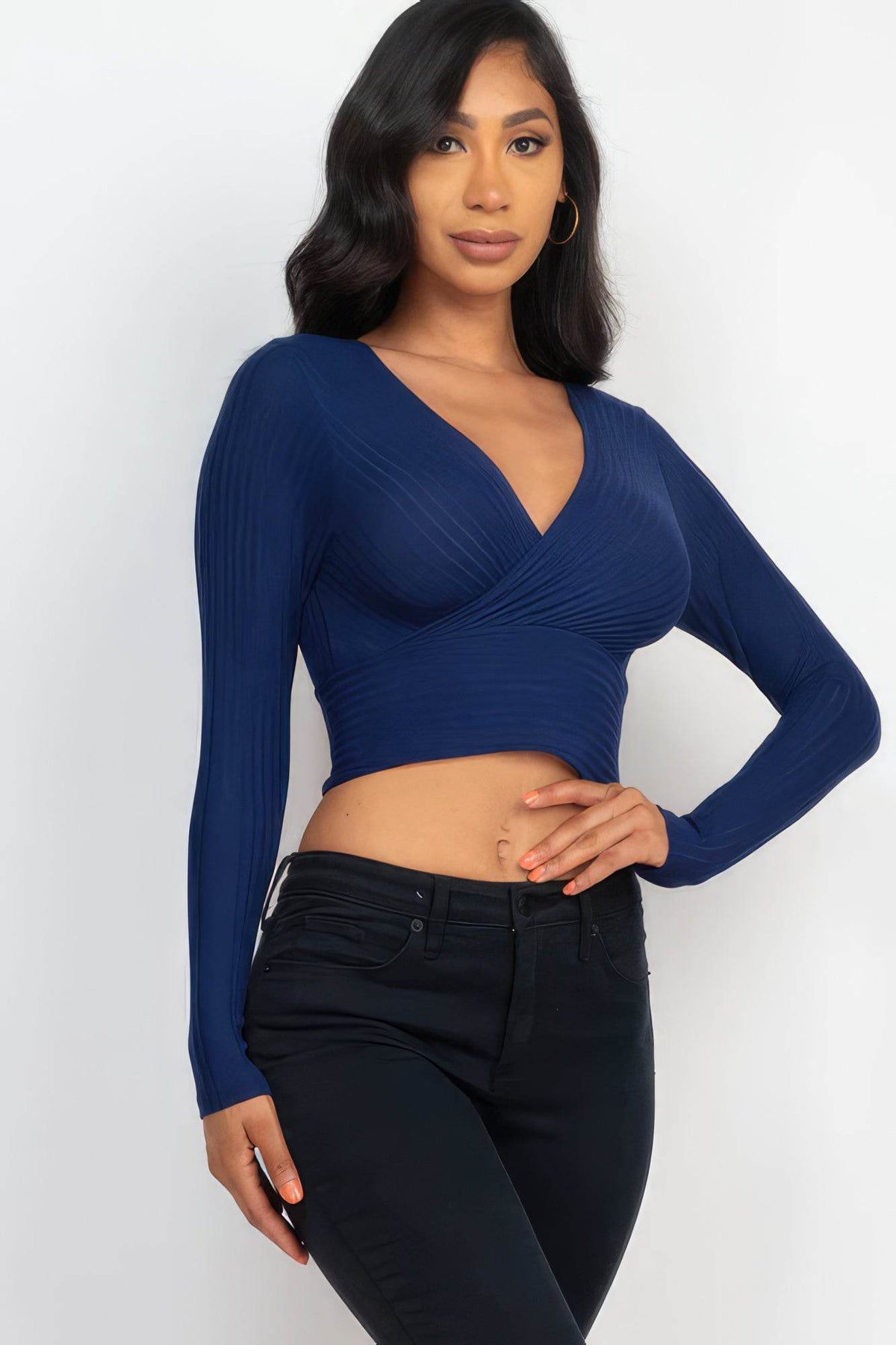 Why Choose Ribbed Wrap Front Long Sleeve Top?