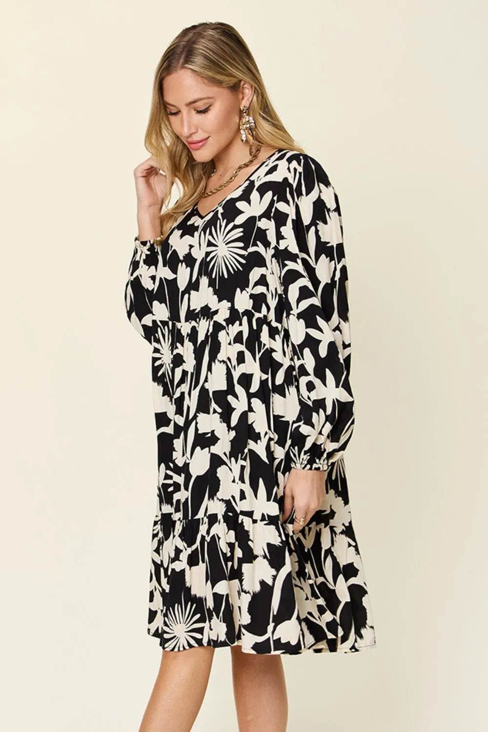 Double Take Floral Long Sleeve Top and Shorts Loungewear Set