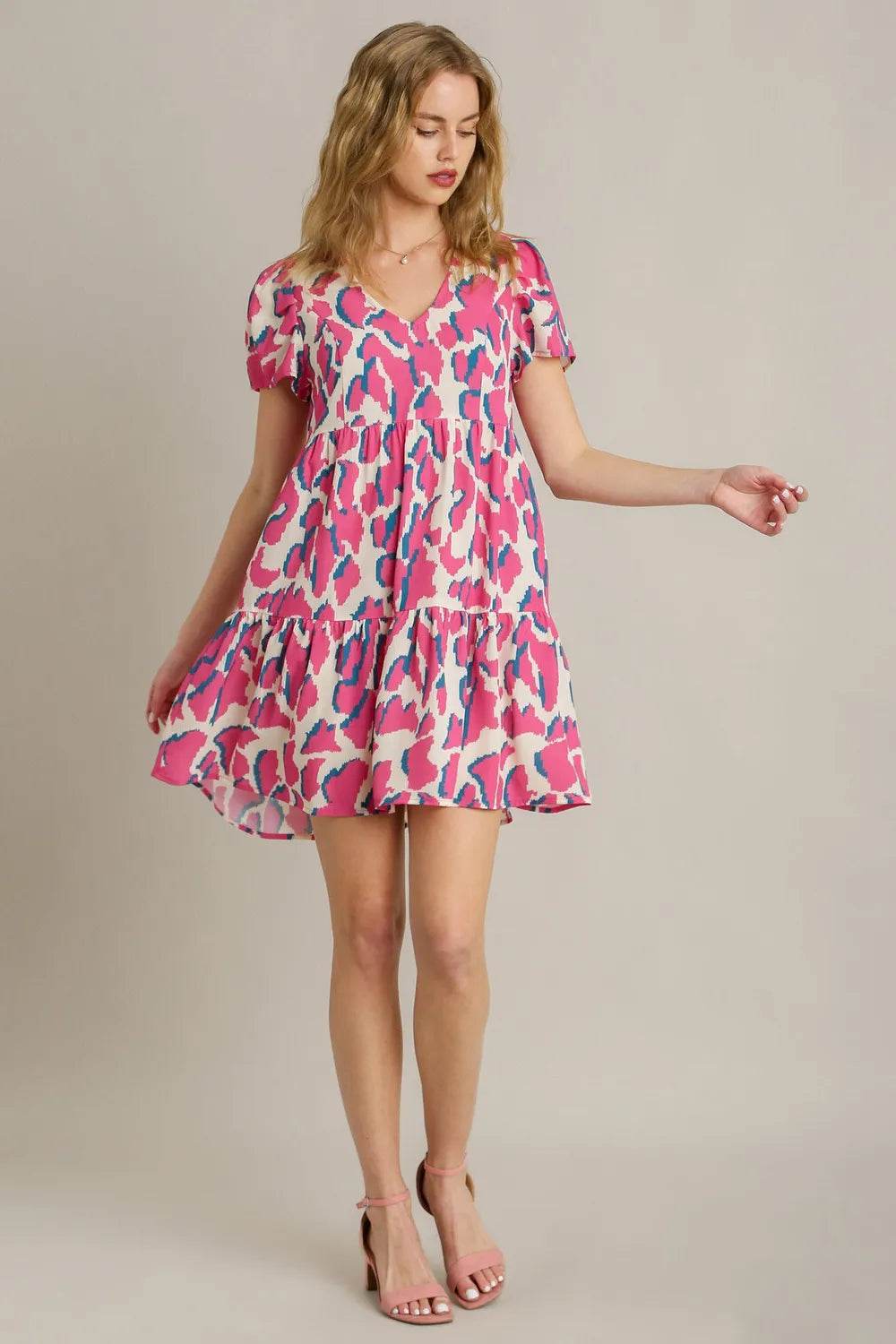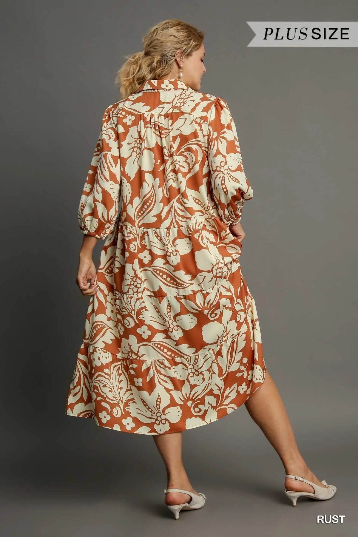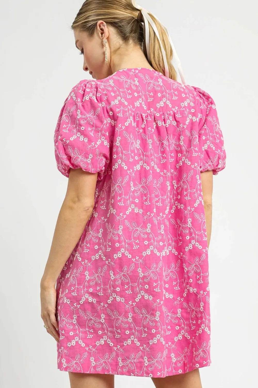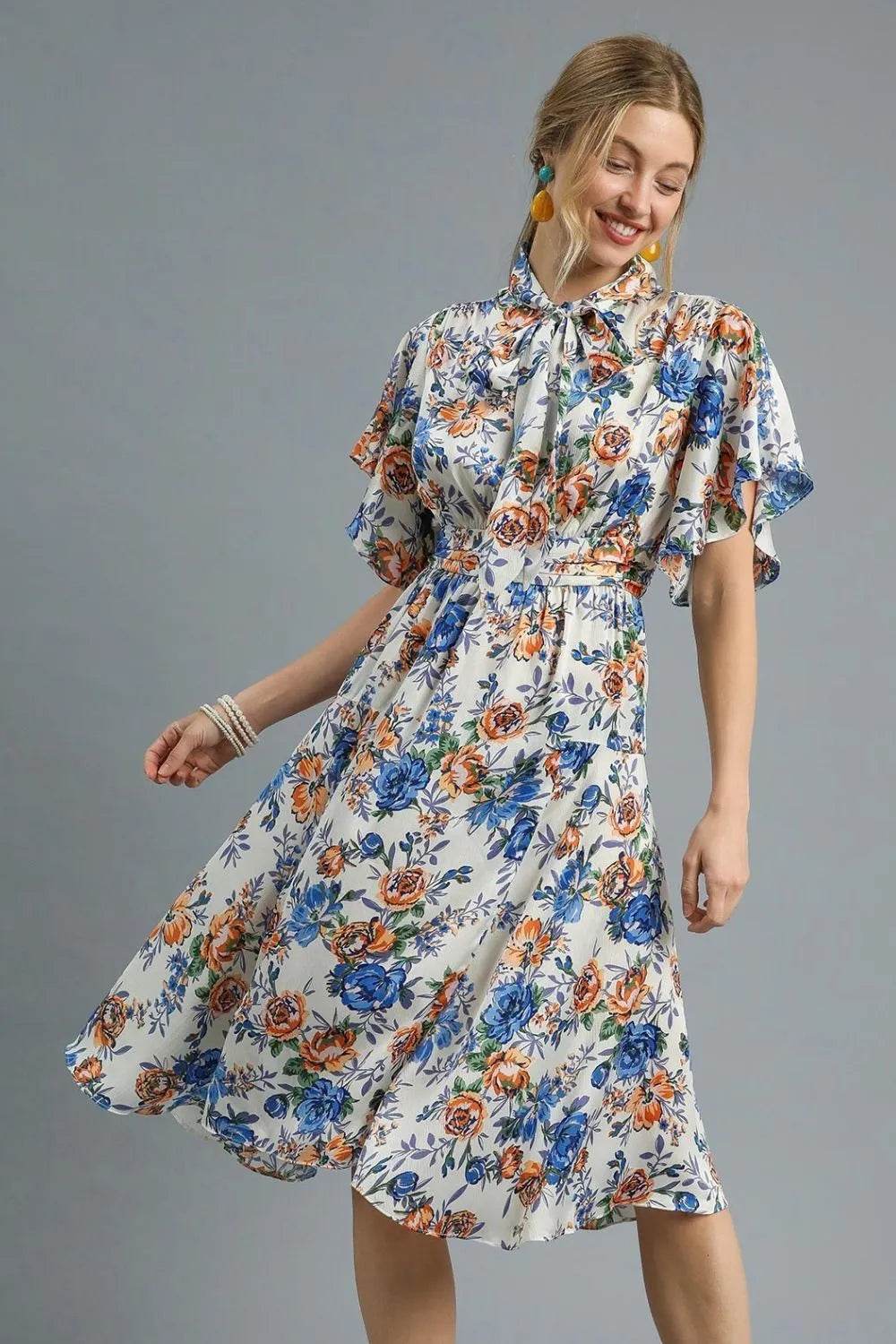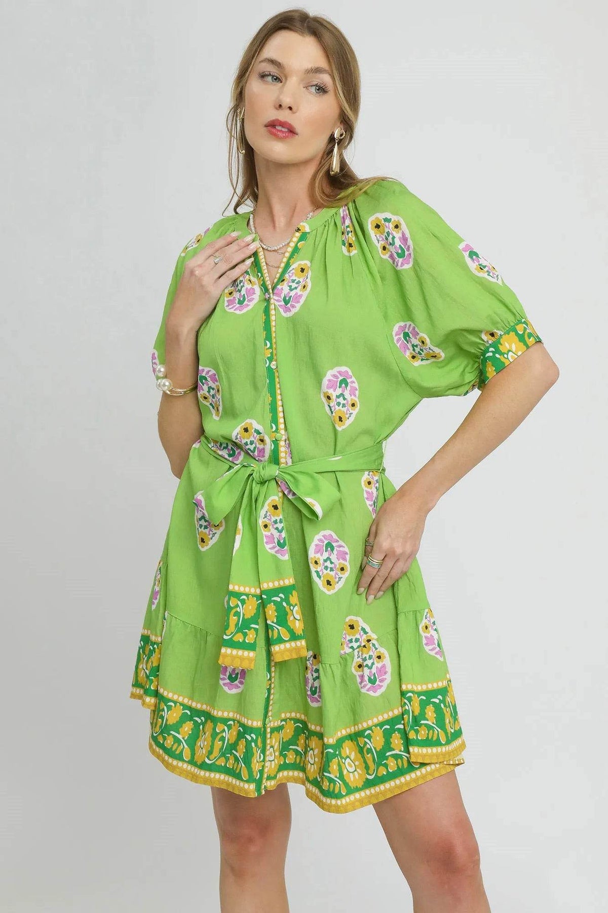 Umgee Full Size Daisy Print Mini Dress with Ribbon Details Plus Size