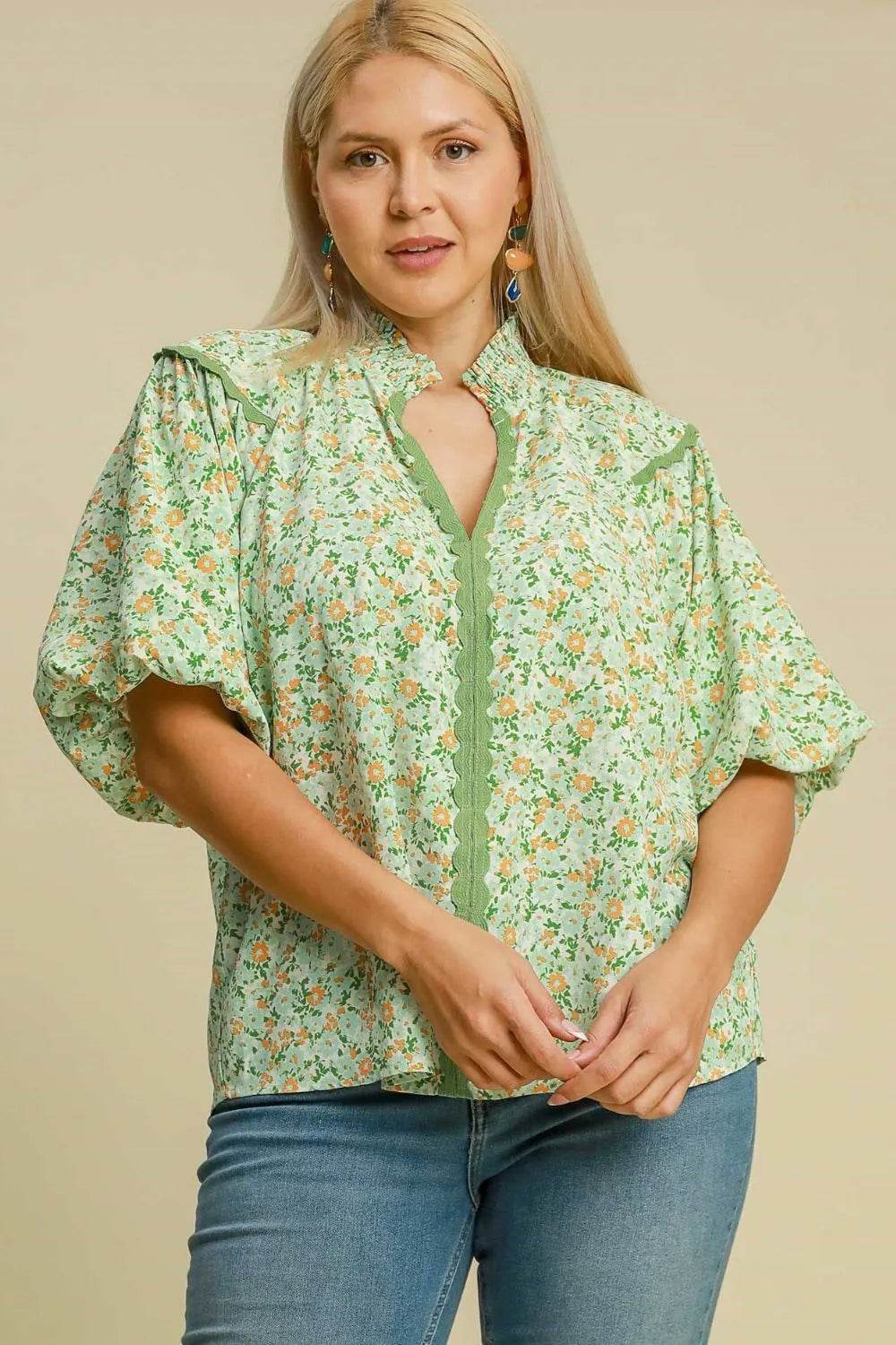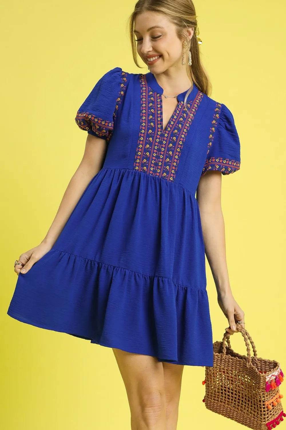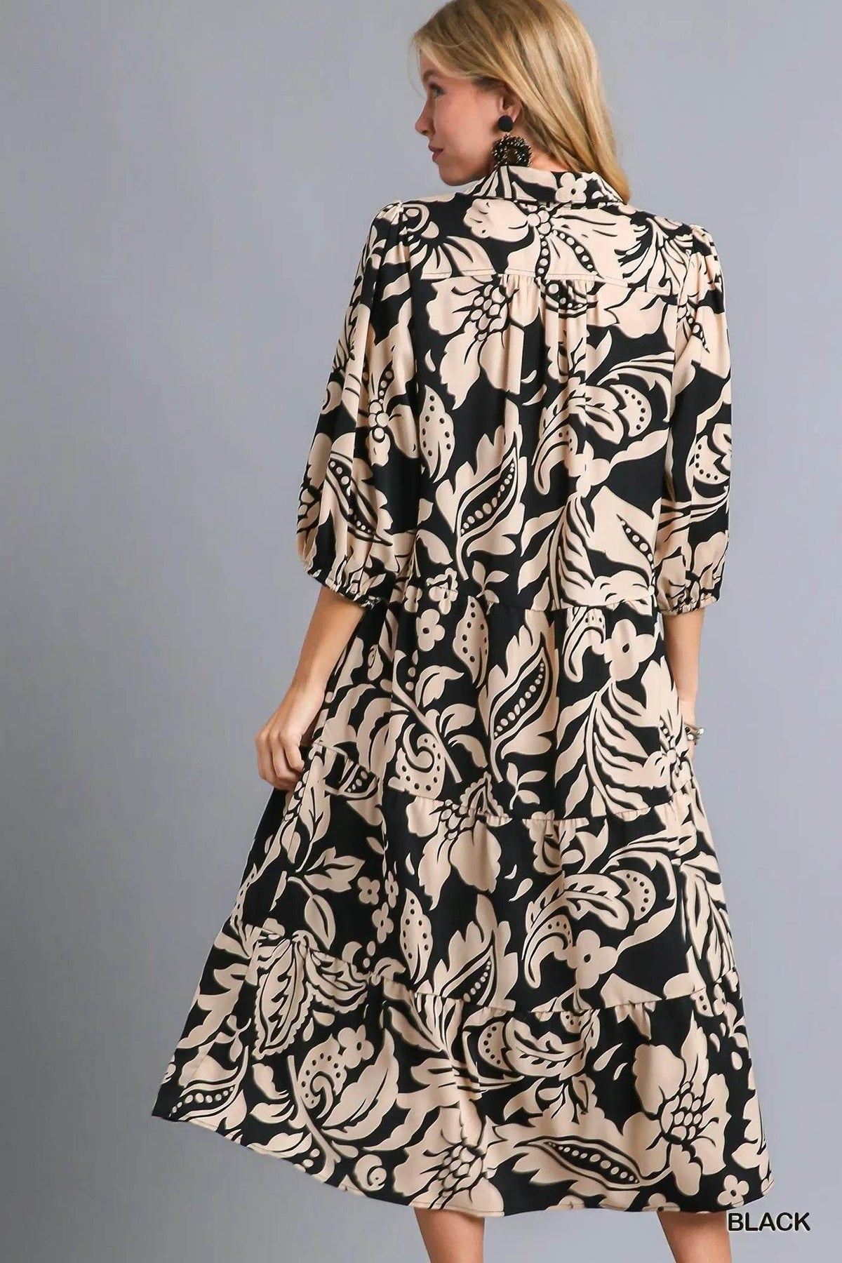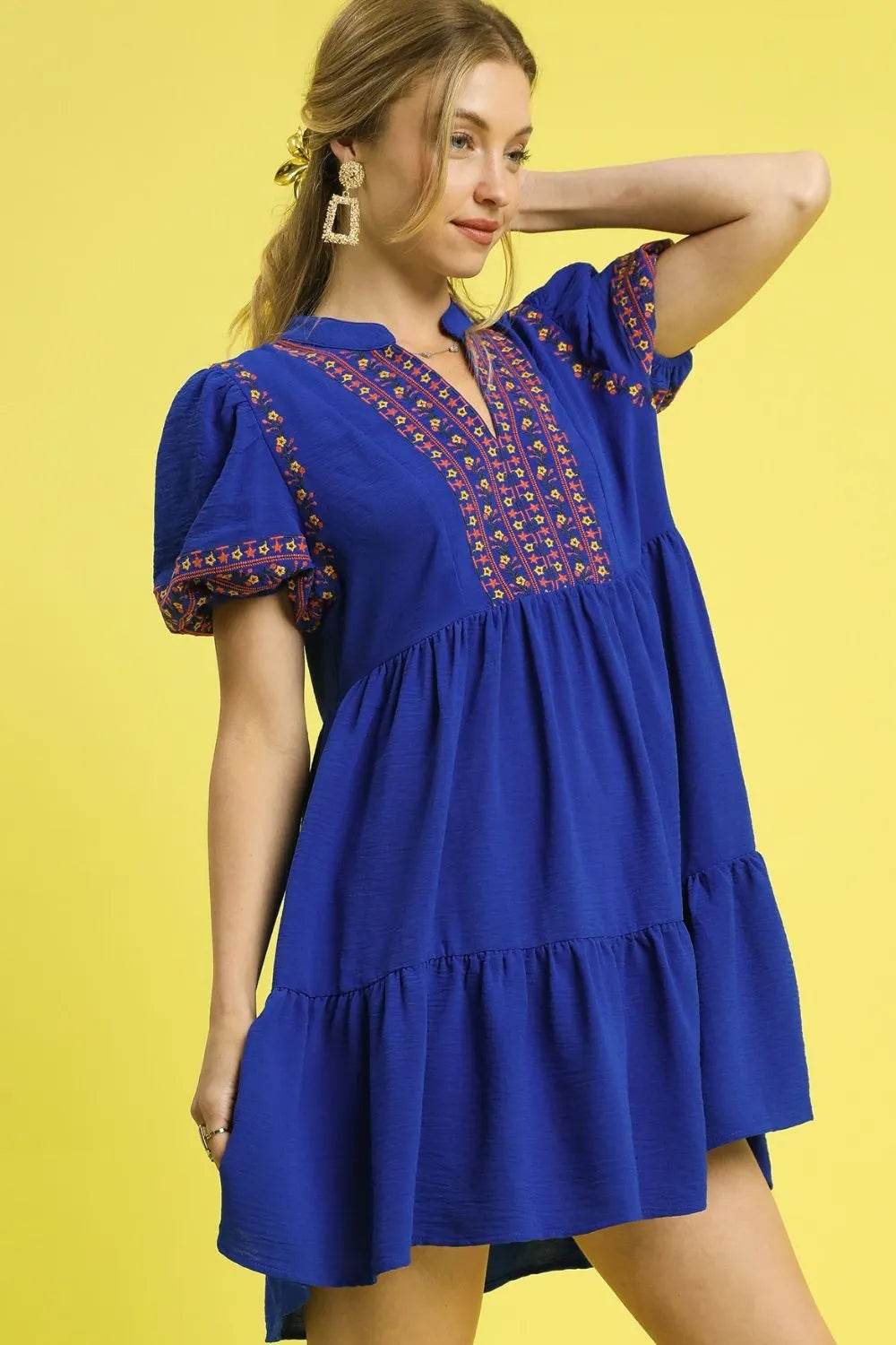 Umgee Full Size Daisy Print Mini Dress with Ribbon Details Plus Size