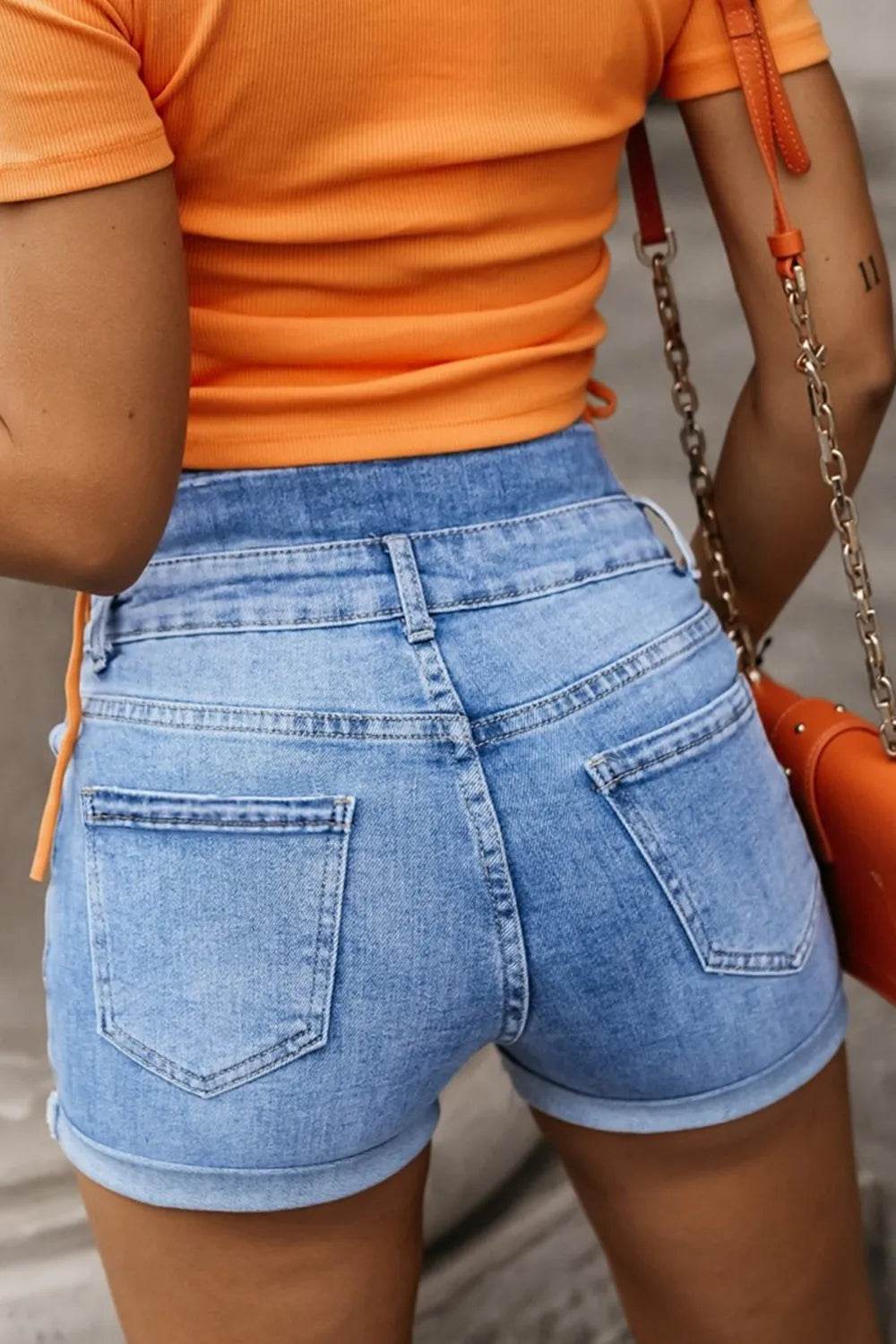 Button-Fly Denim Shorts with Pockets - Ebony's Shopping