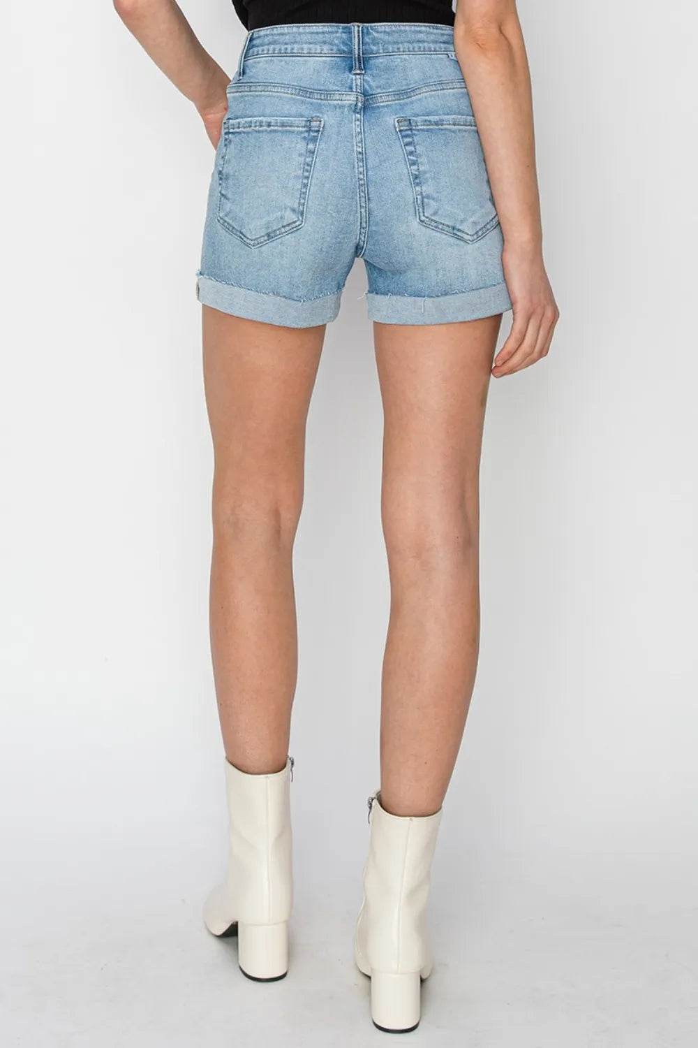 Distressed Mid-Rise Waist Denim Shorts are a stylish and trendy addition to your summer wardrobe. The distressed detailing adds a touch of edge and character to these shorts, perfect for those seeking a laid-back and relaxed vibe. With a mid-rise waist, they offer a comfortable fit that is flattering for all body types. These shorts are versatile and can be easily dressed up with a flowy blouse and sandals for a chic summer look, or dressed down with a simple tee and sneakers for a casual outing. Whether you're hitting the beach, running errands, or enjoying a weekend brunch, these distressed denim shorts will be a go-to piece for effortless style all season long.