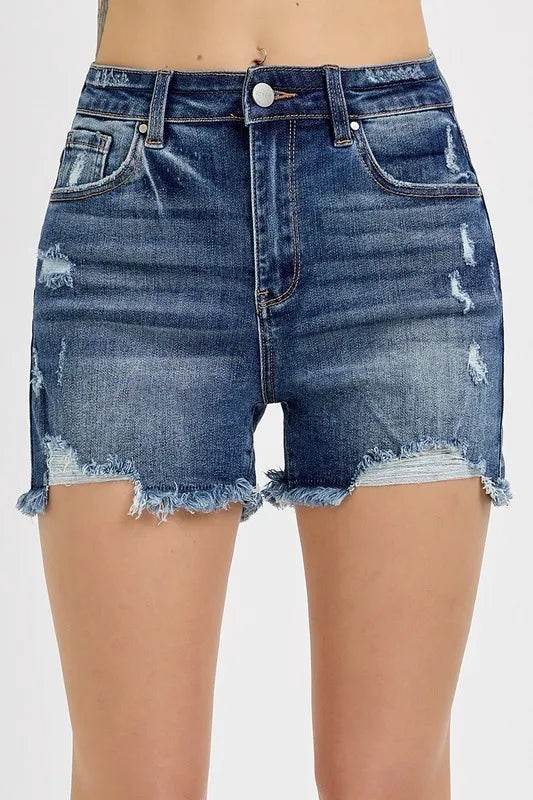 RISEN Distressed Raw Hem Denim Shorts - Ebony's Shopping