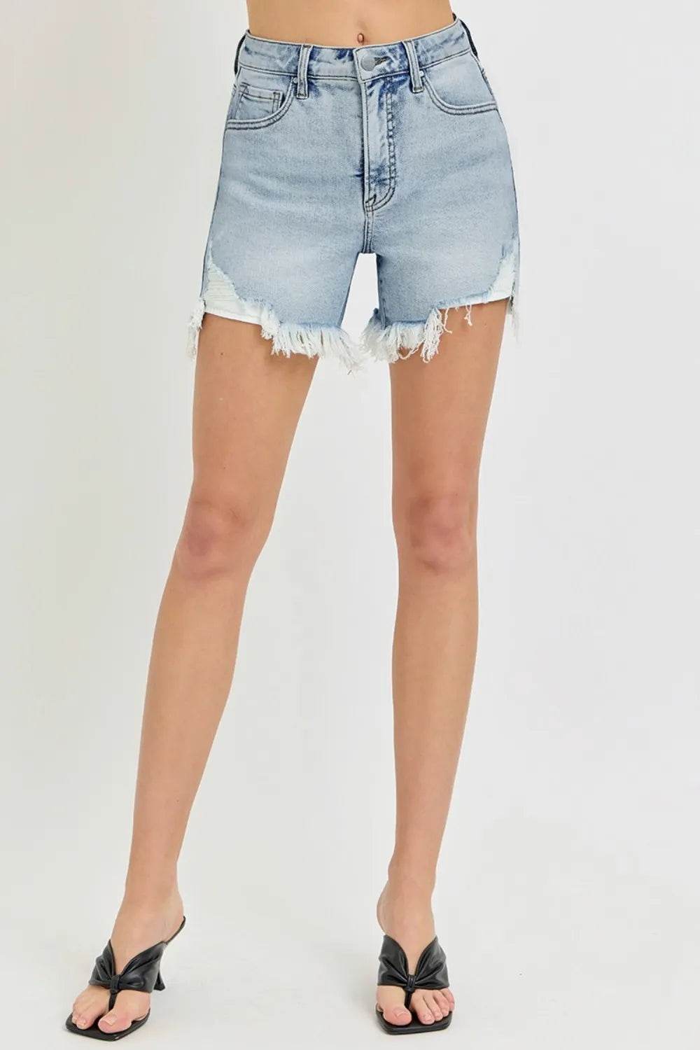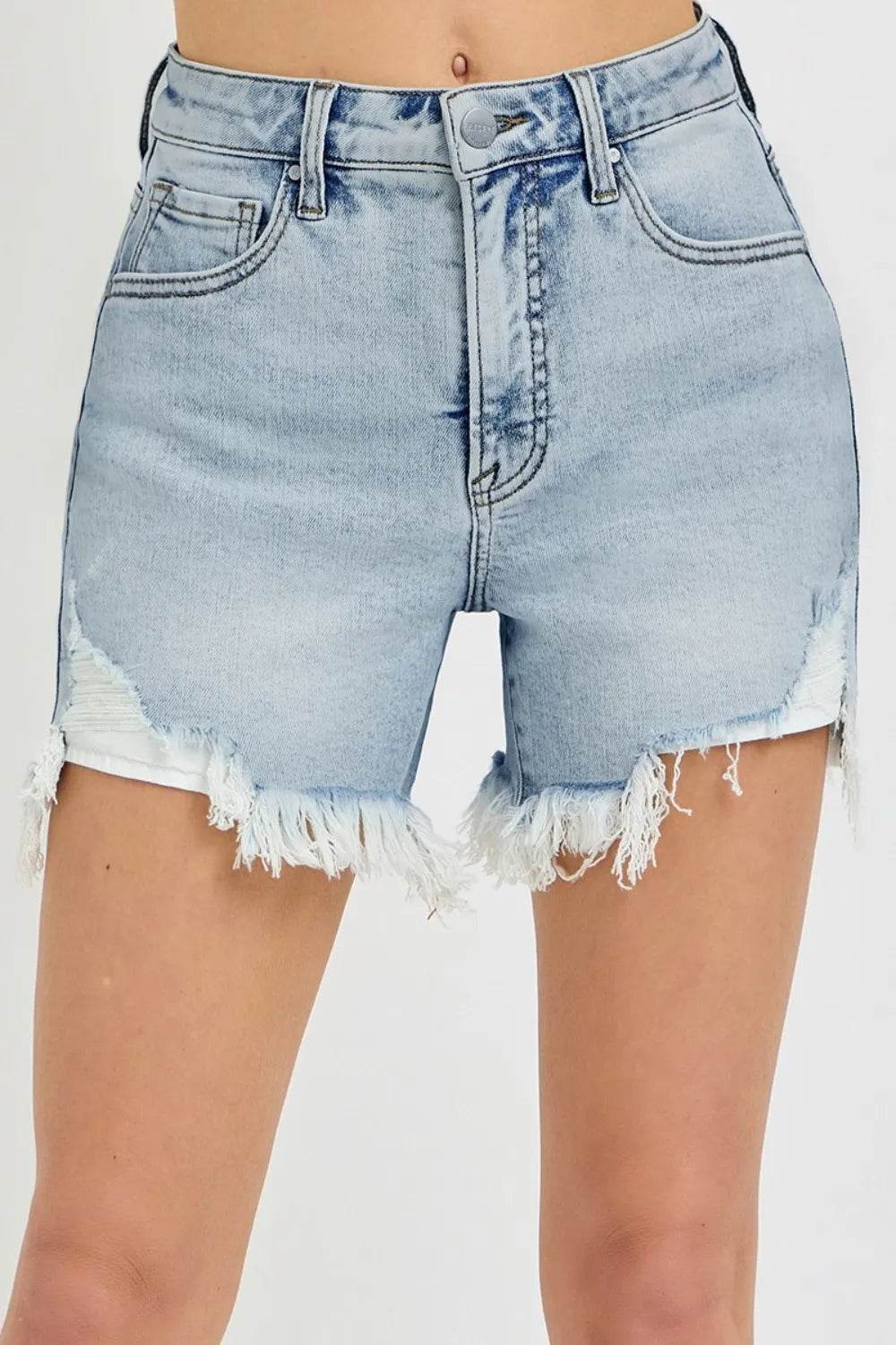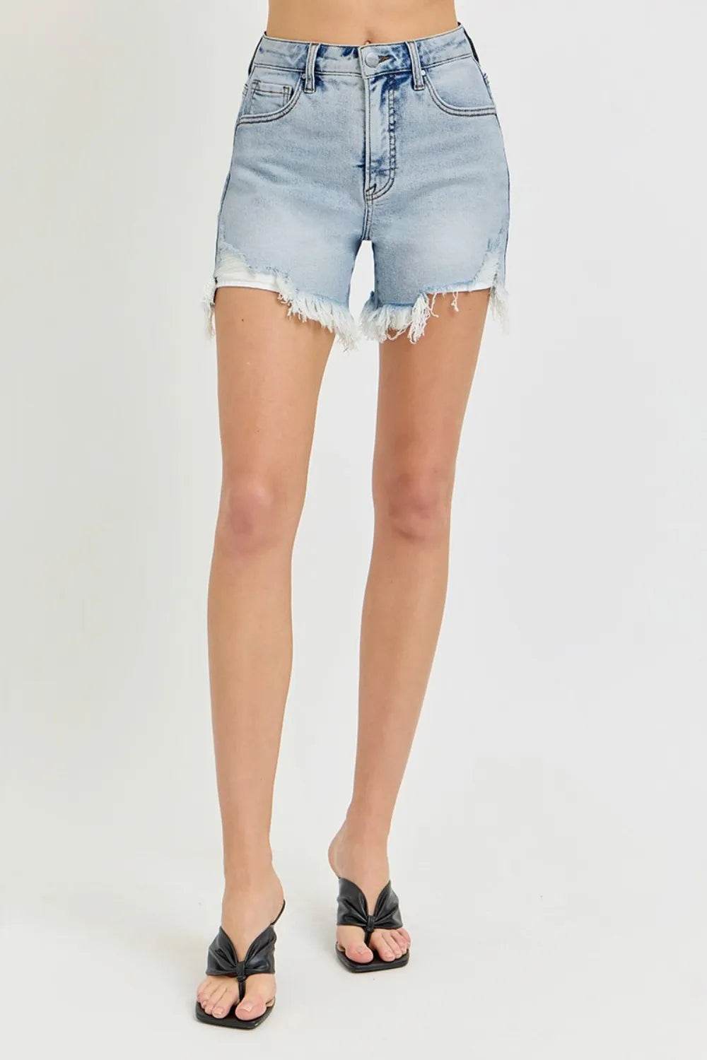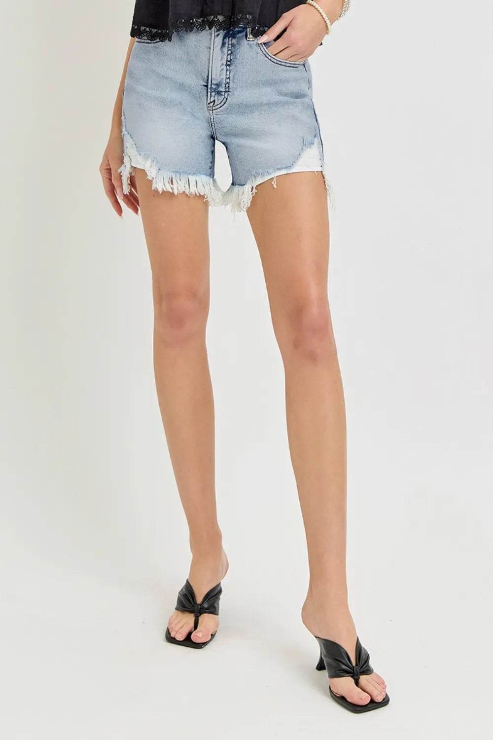These high-rise shorts feature a unique side step hem design that adds a modern twist to a classic silhouette. The high rise waist offers a flattering and comfortable fit, perfect for pairing with your favorite tops. The side step hem detailing gives these shorts an edgy and fashion-forward look, making them stand out from traditional styles. With a versatile design, these shorts can be dressed up or down for various occasions. The high-rise fit elongates the legs and creates a sleek silhouette. Overall, these high rise side step hem shorts are a stylish and trendy addition to any summer wardrobe.