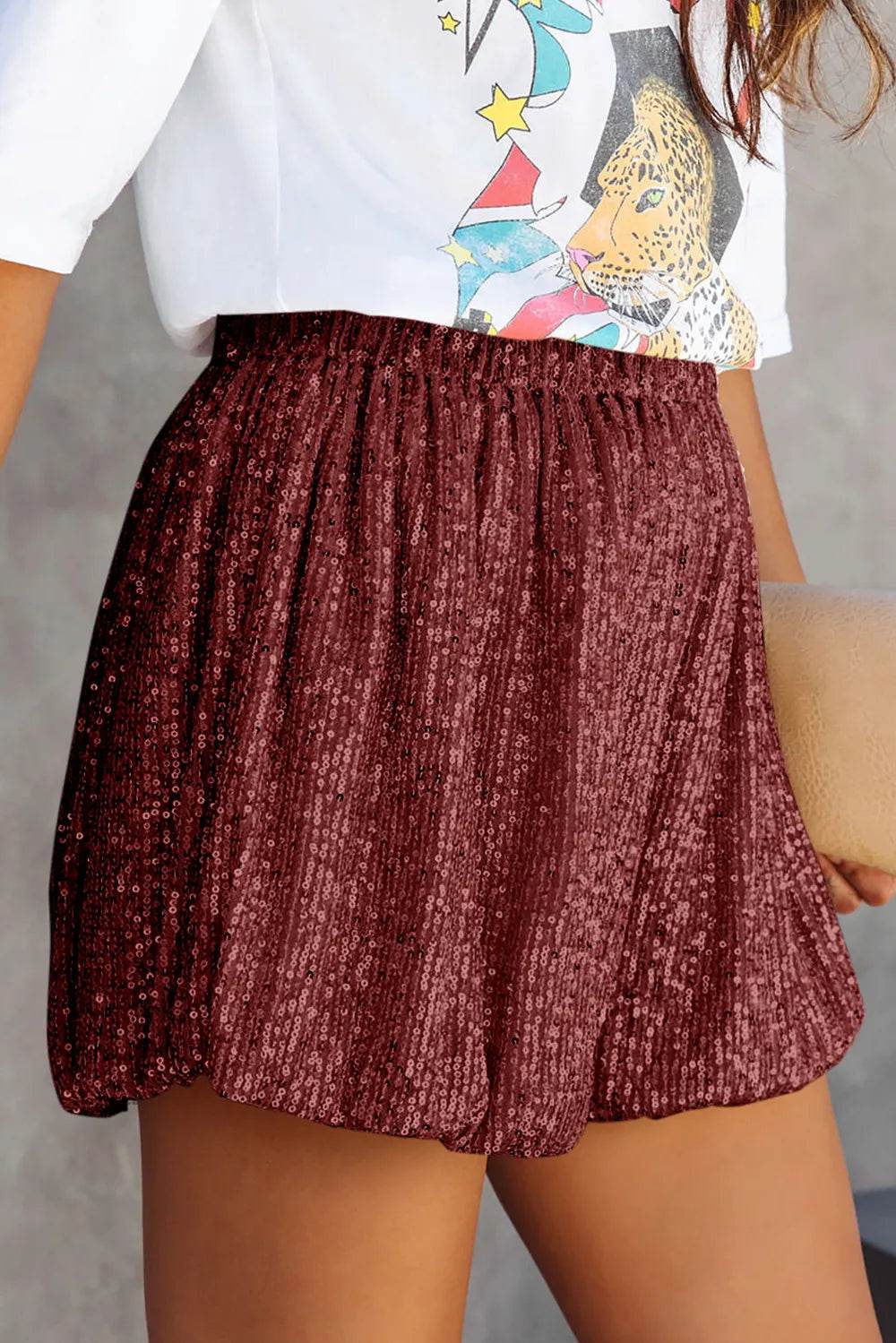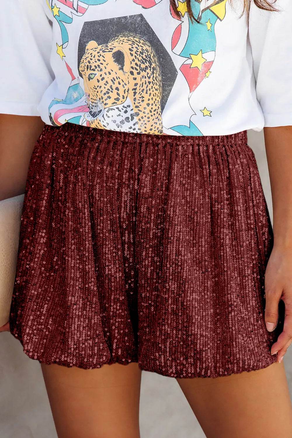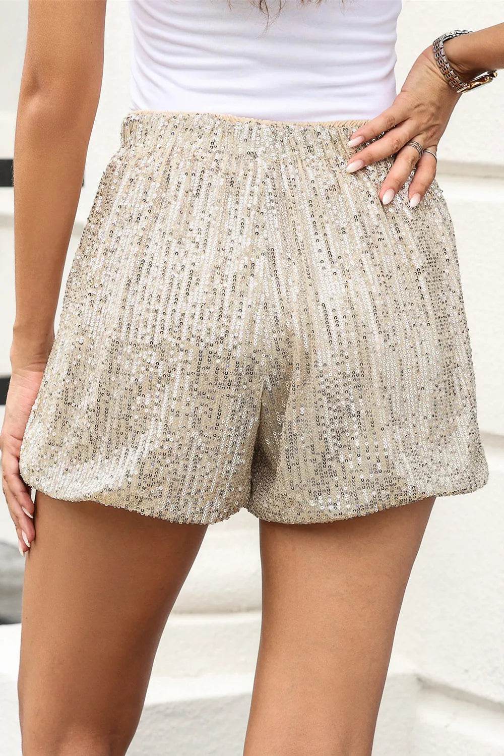 Sequin Elastic Waist Shorts - Ebony's Shopping