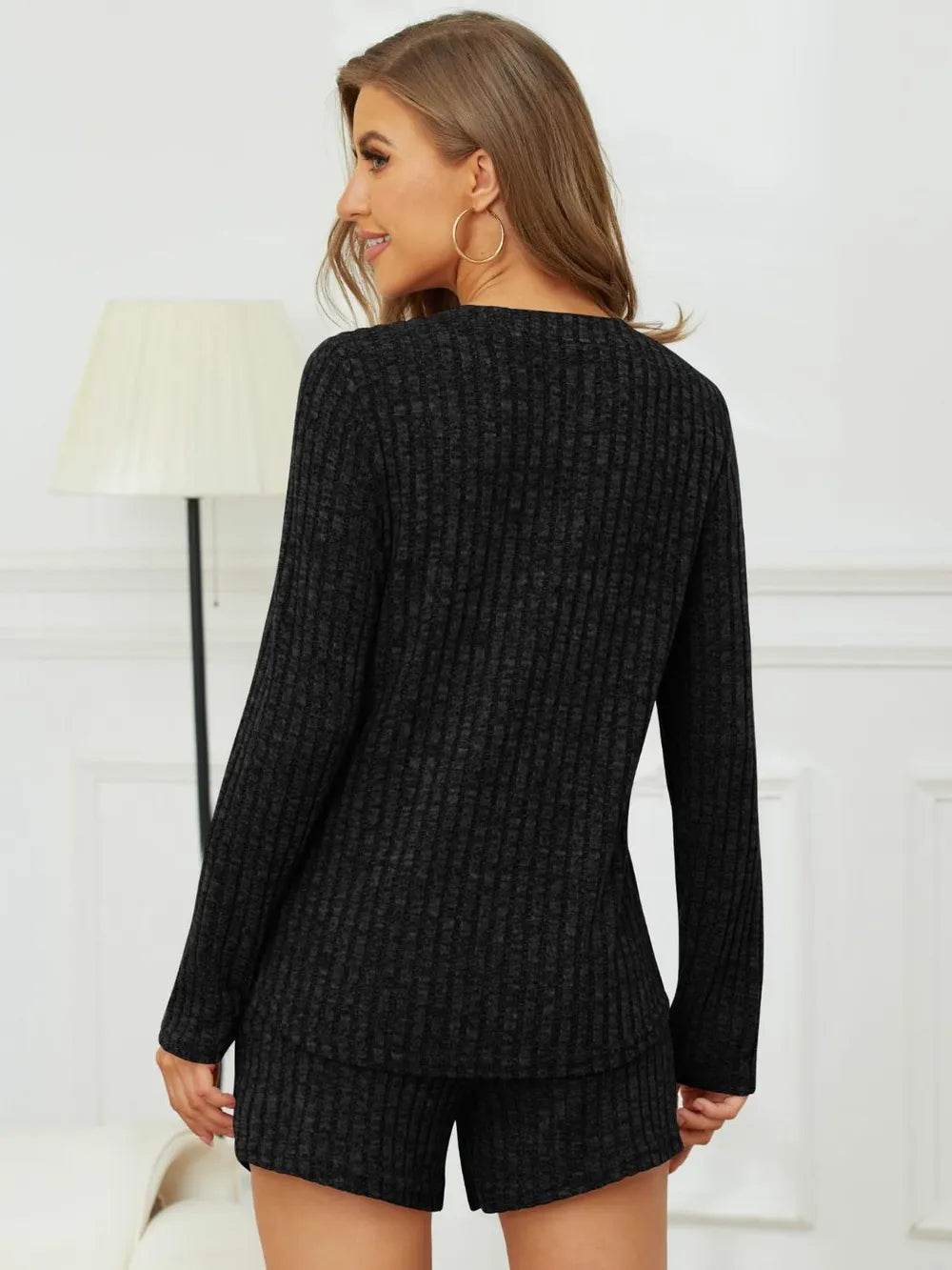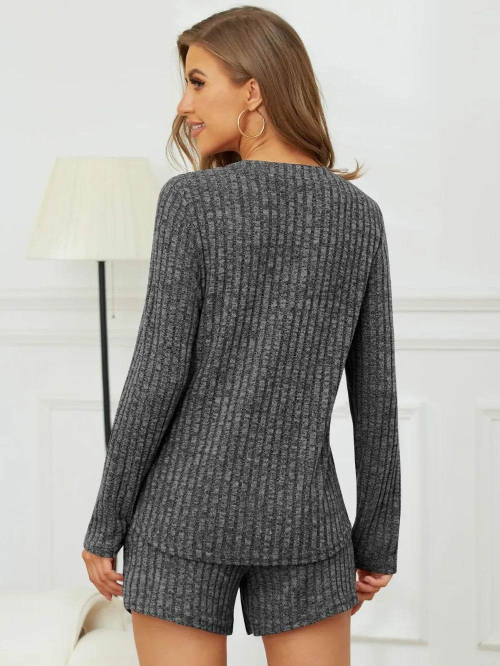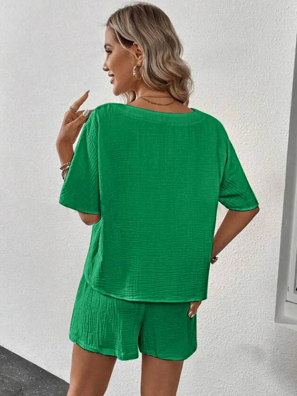 Zenana Full Size V-Neck Short Sleeve Slit T-Shirt and Shorts Set