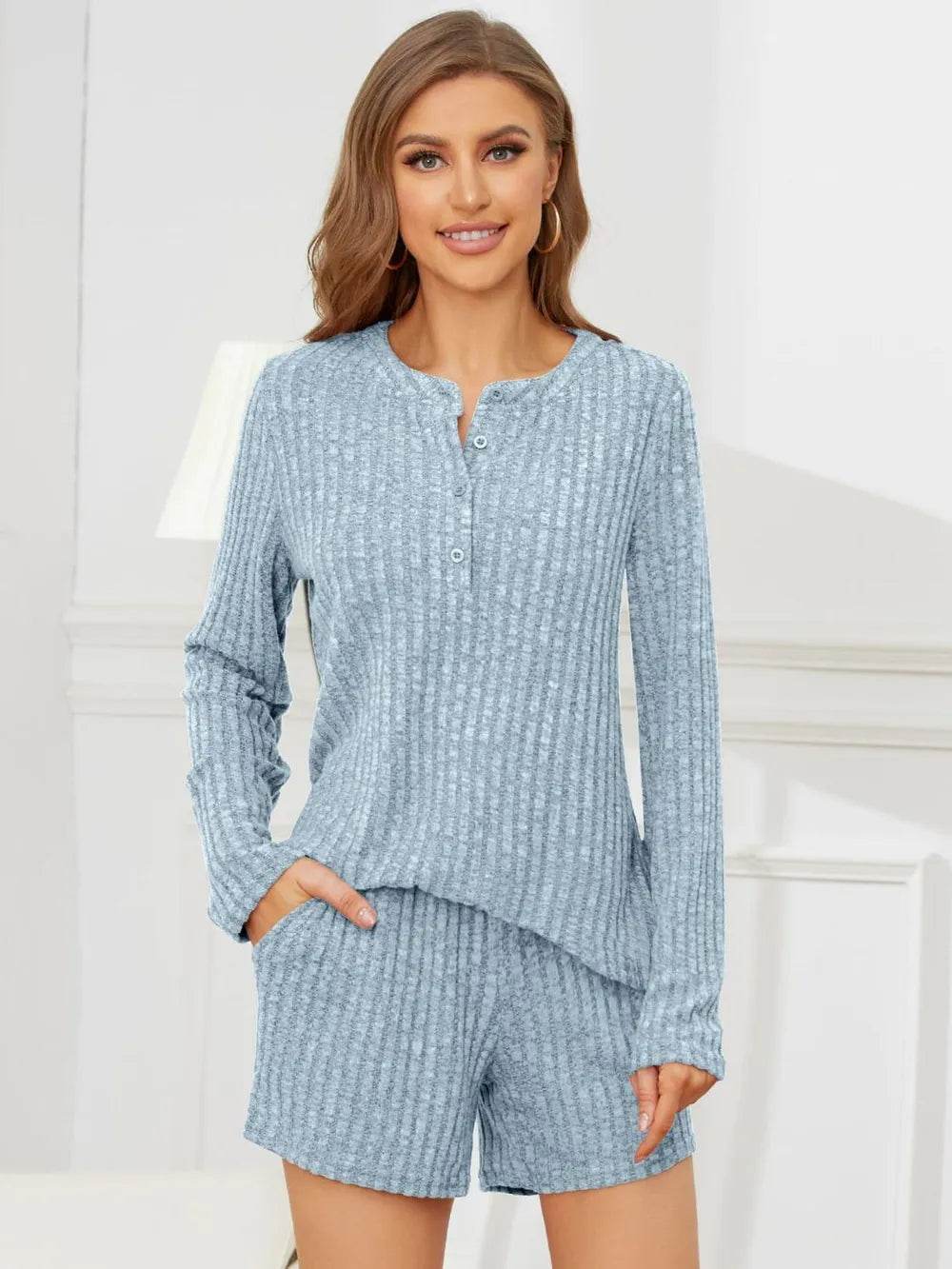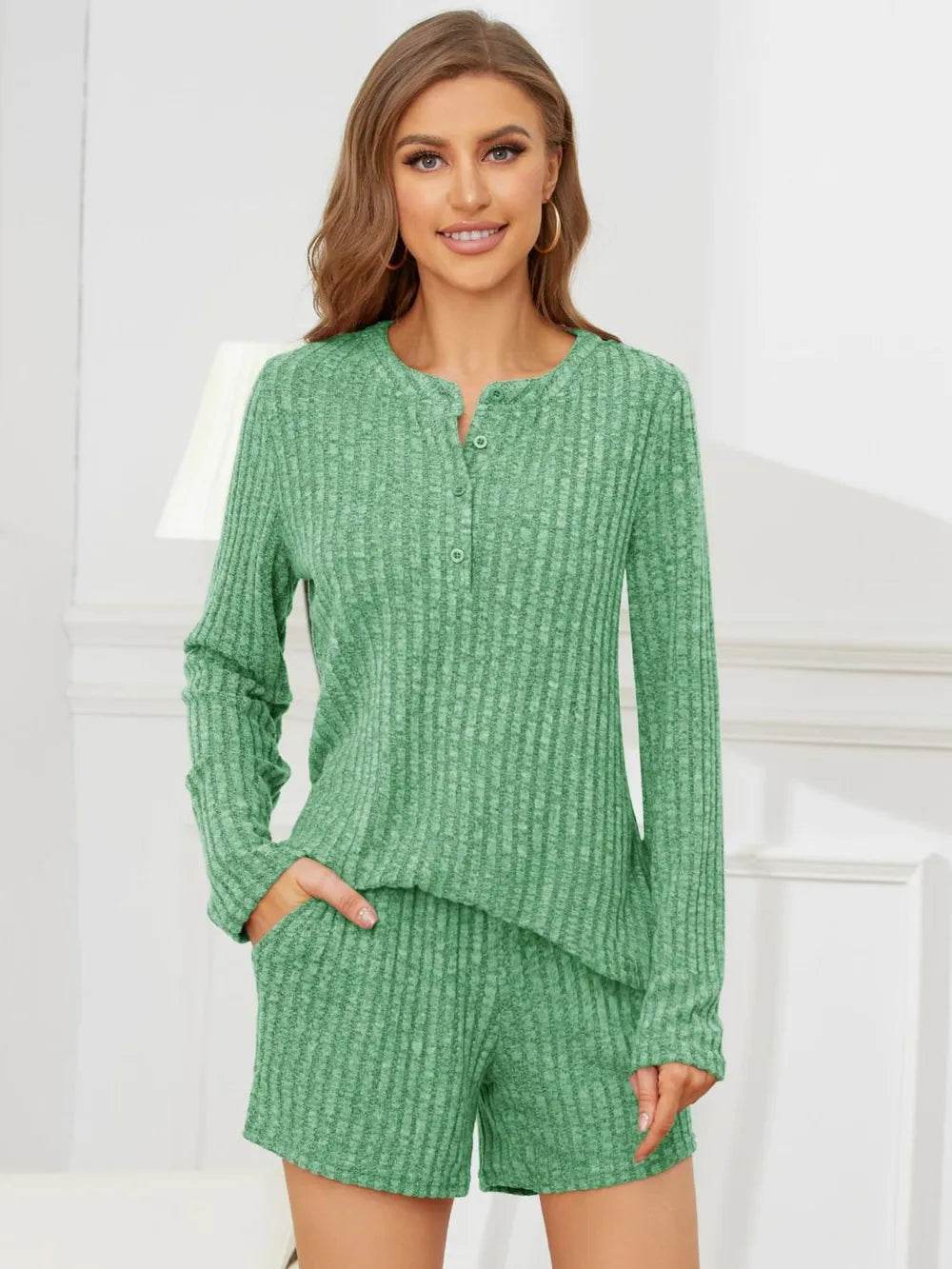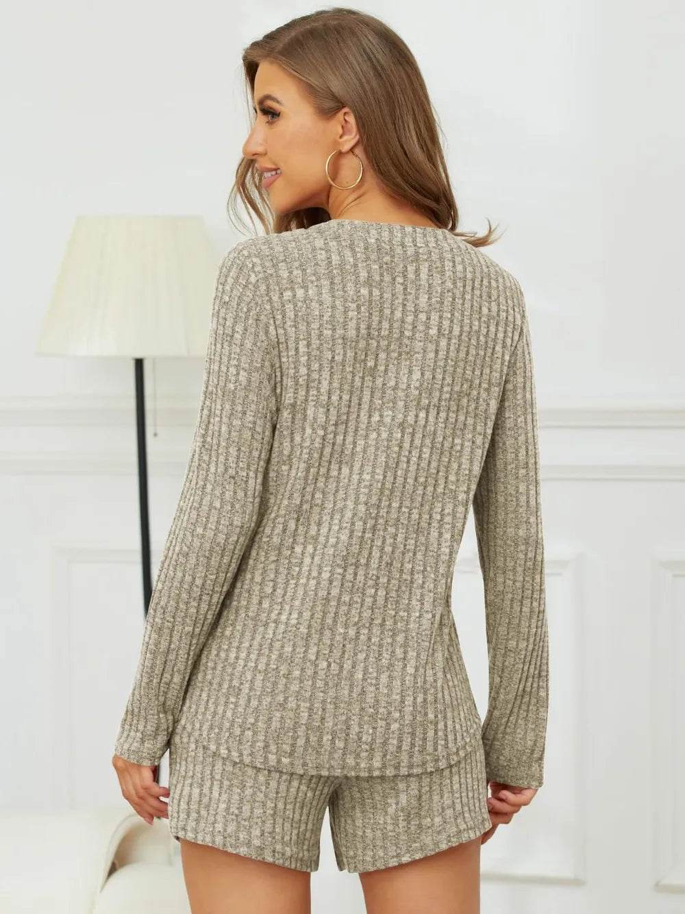 Zenana Full Size V-Neck Short Sleeve Slit T-Shirt and Shorts Set
