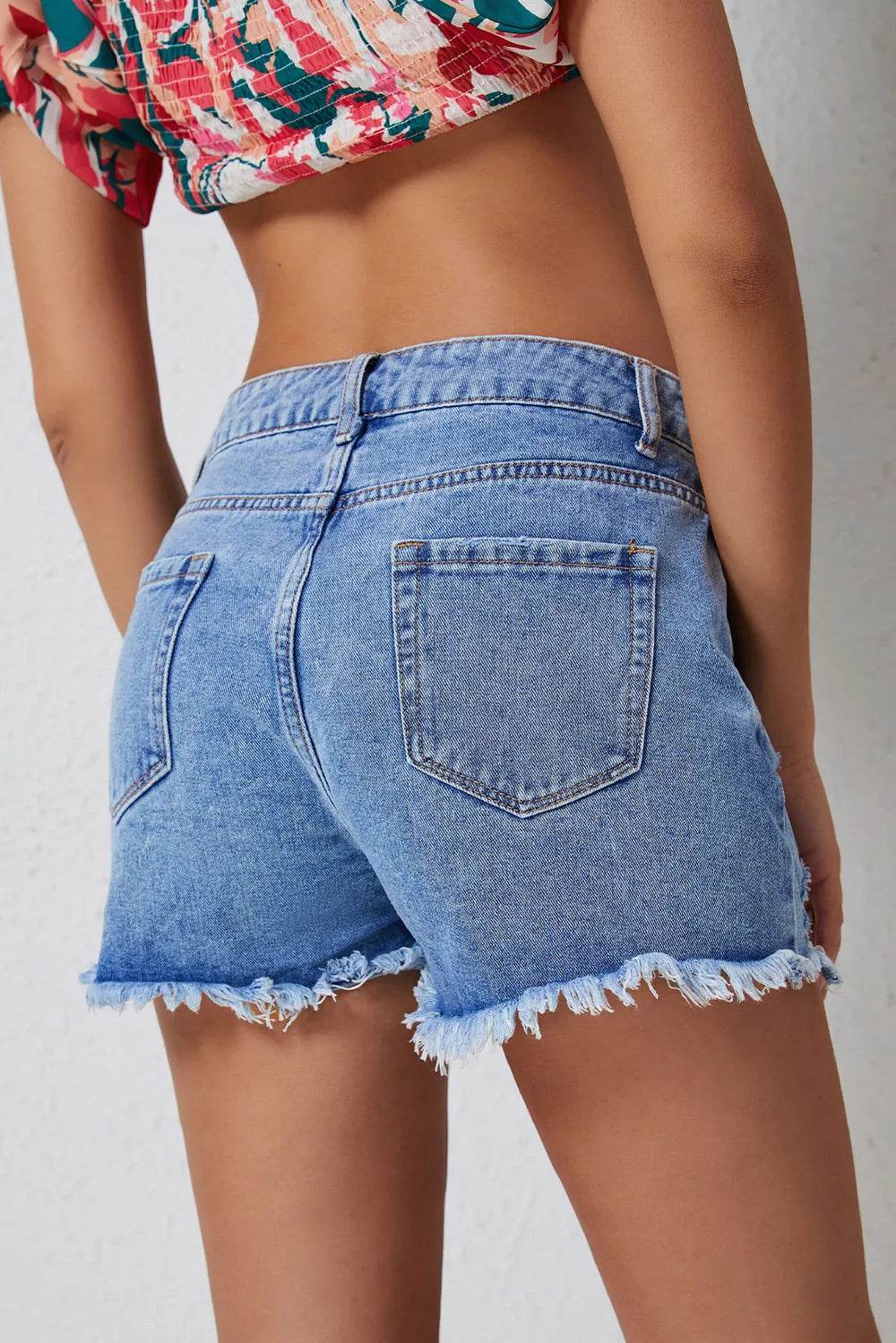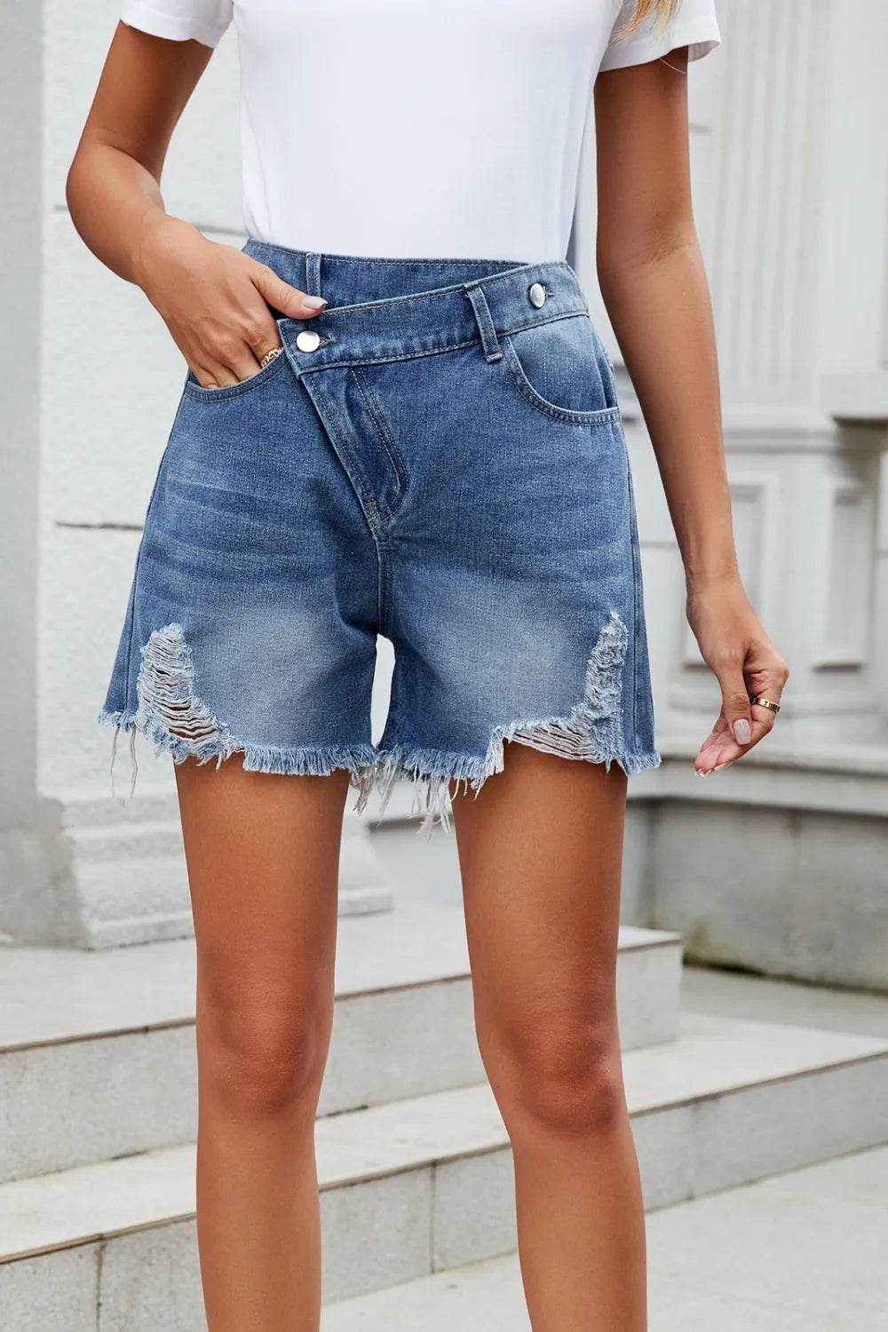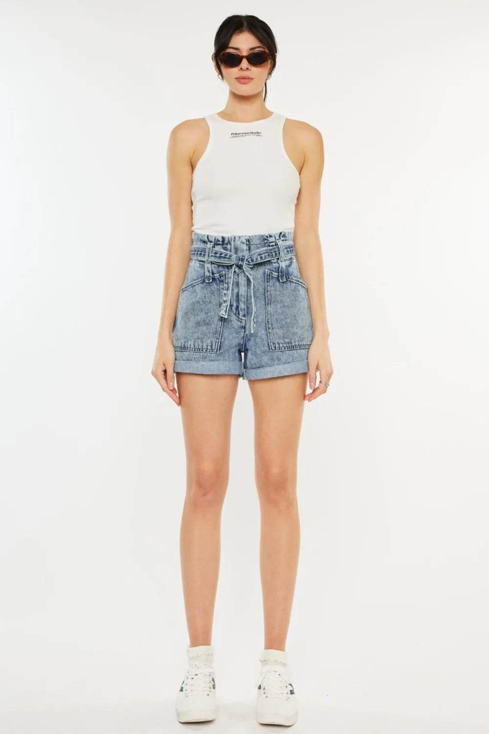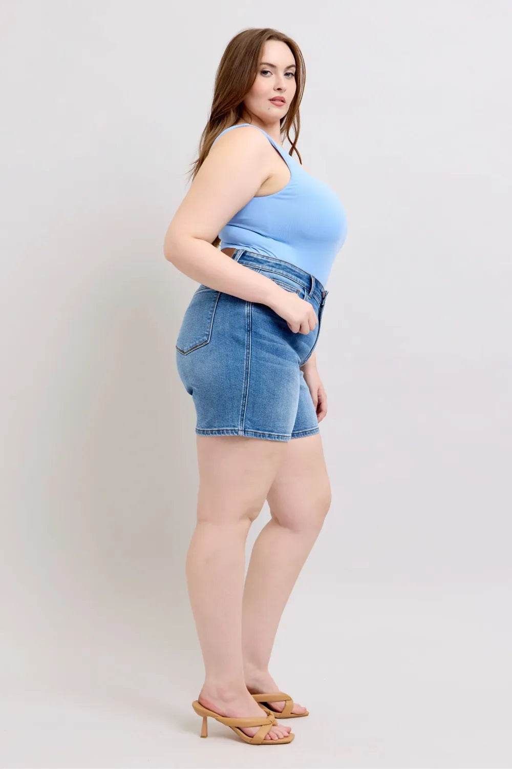 RFM Tummy Control High Waist Raw Hem Denim Shorts