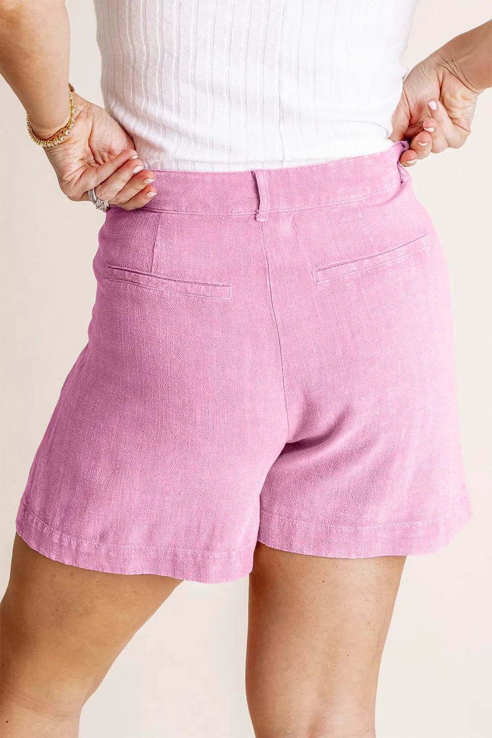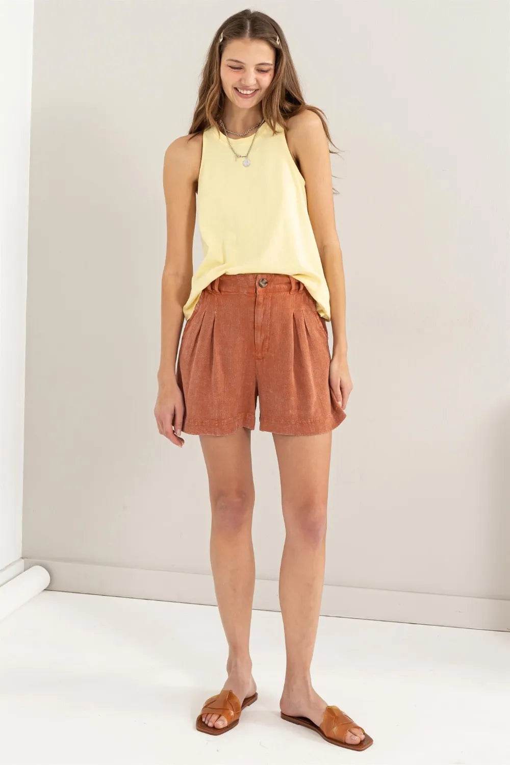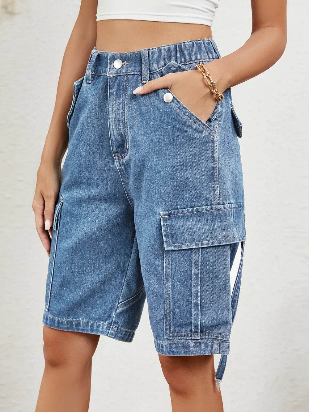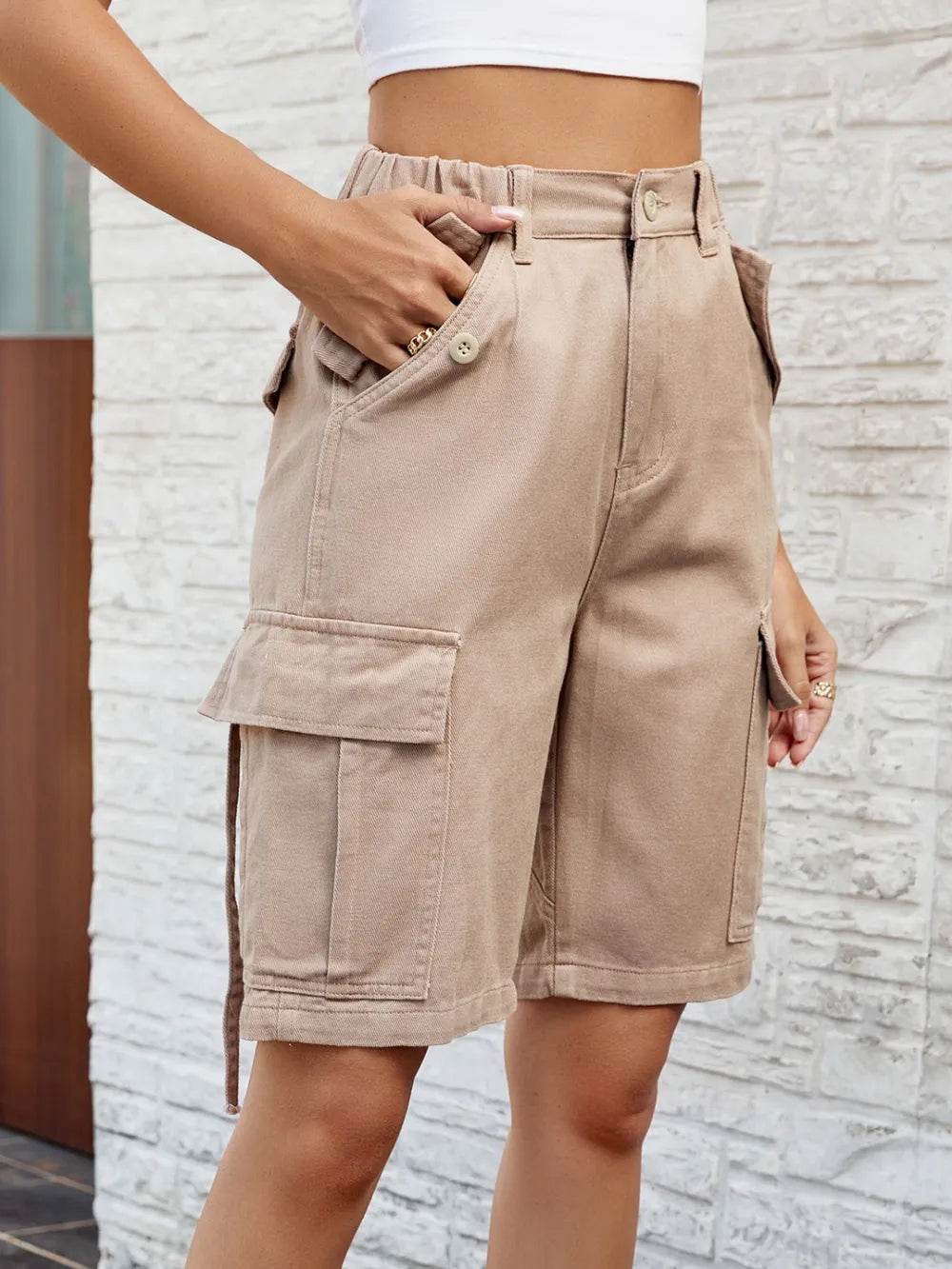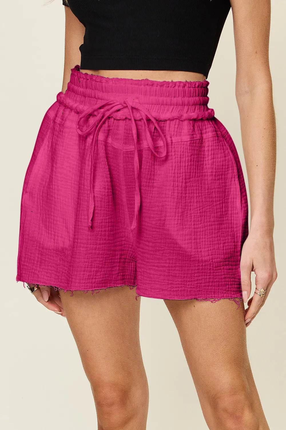 These tummy control high waist raw hem denim shorts are the perfect combination of style and comfort. The high waist design helps to smooth and shape your midsection, providing a flattering fit. The raw hem adds a trendy and edgy touch to the classic denim shorts. Made from a stretchy denim material, these shorts offer a comfortable and flattering fit. The tummy control feature is great for enhancing your silhouette and providing extra support. Pair these shorts with a tucked-in tank top or a flowy blouse for a chic and casual look. The raw hem detail adds a modern flair to your outfit, making these shorts a versatile and on-trend piece for your summer wardrobe.
