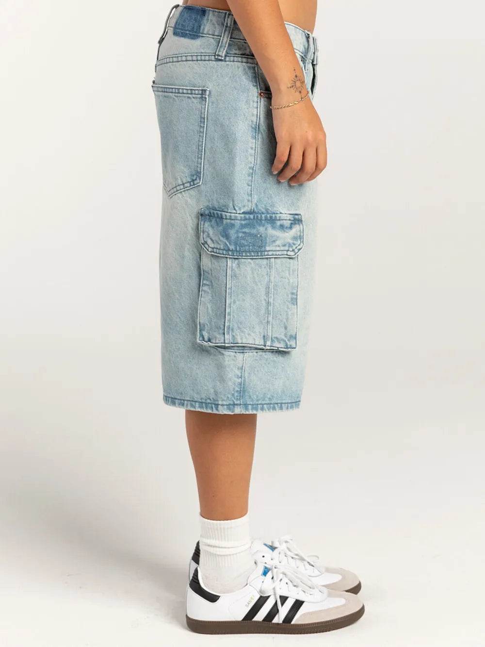 - Features: Raw Hem, Pocketed