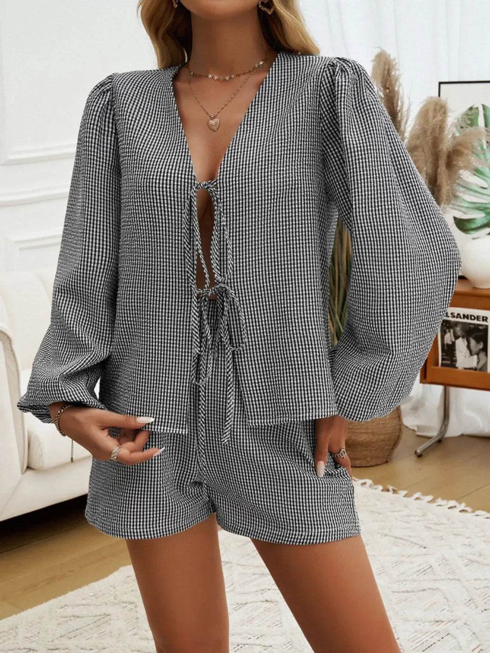 Add a touch of timeless elegance to your wardrobe with our Multicolor Tie-dye Velvet Cropped Long Sleeve Top & Bike Shorts Set in Black/White. Add it to your cart now and embrace style and coziness!
