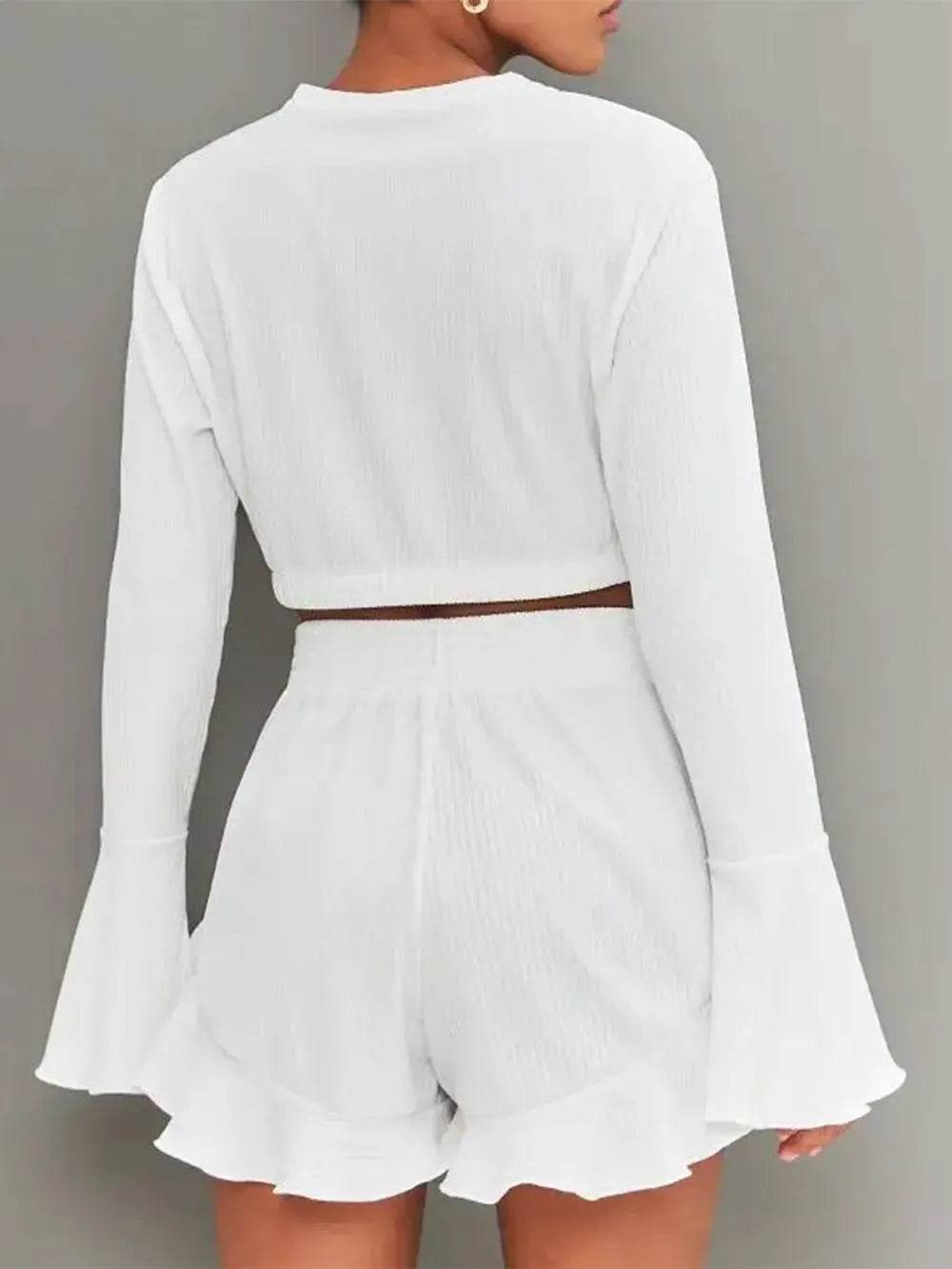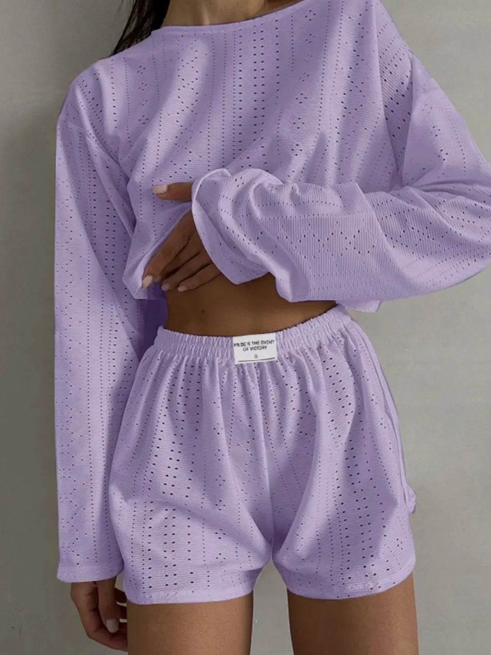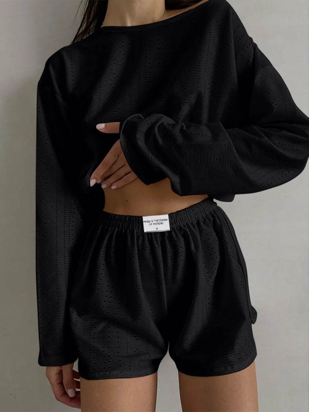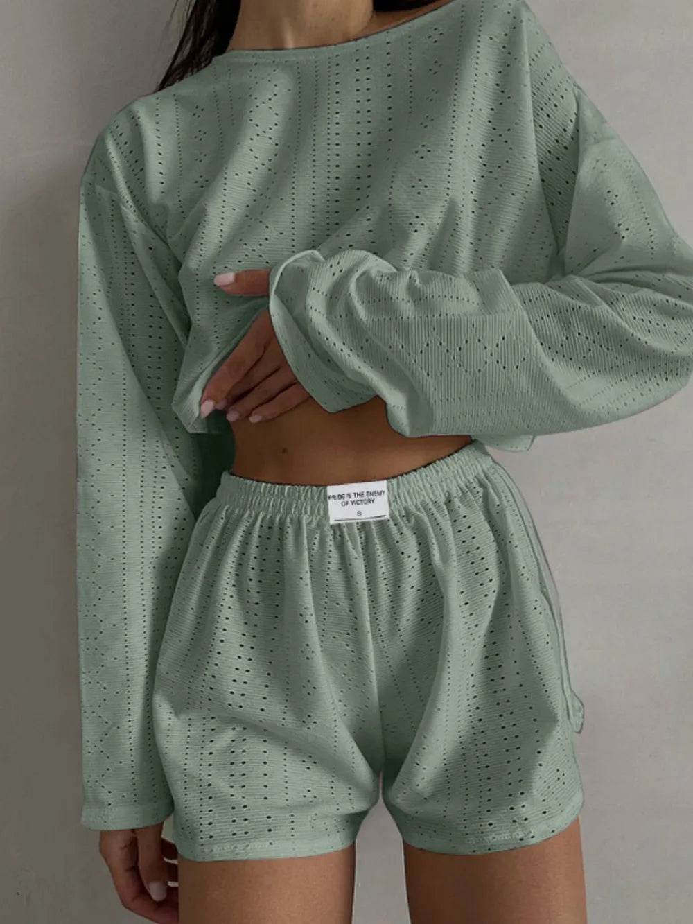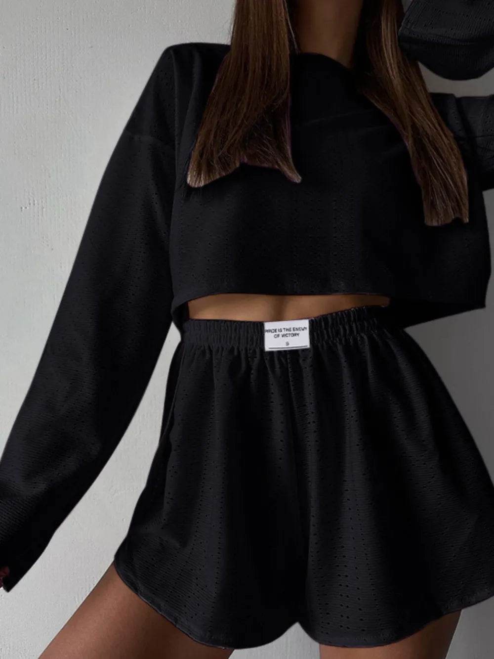5. Design: The round neckline, long sleeve, and cropped length top pair seamlessly with the elastic high waist biker shorts, creating a fashionable ensemble.