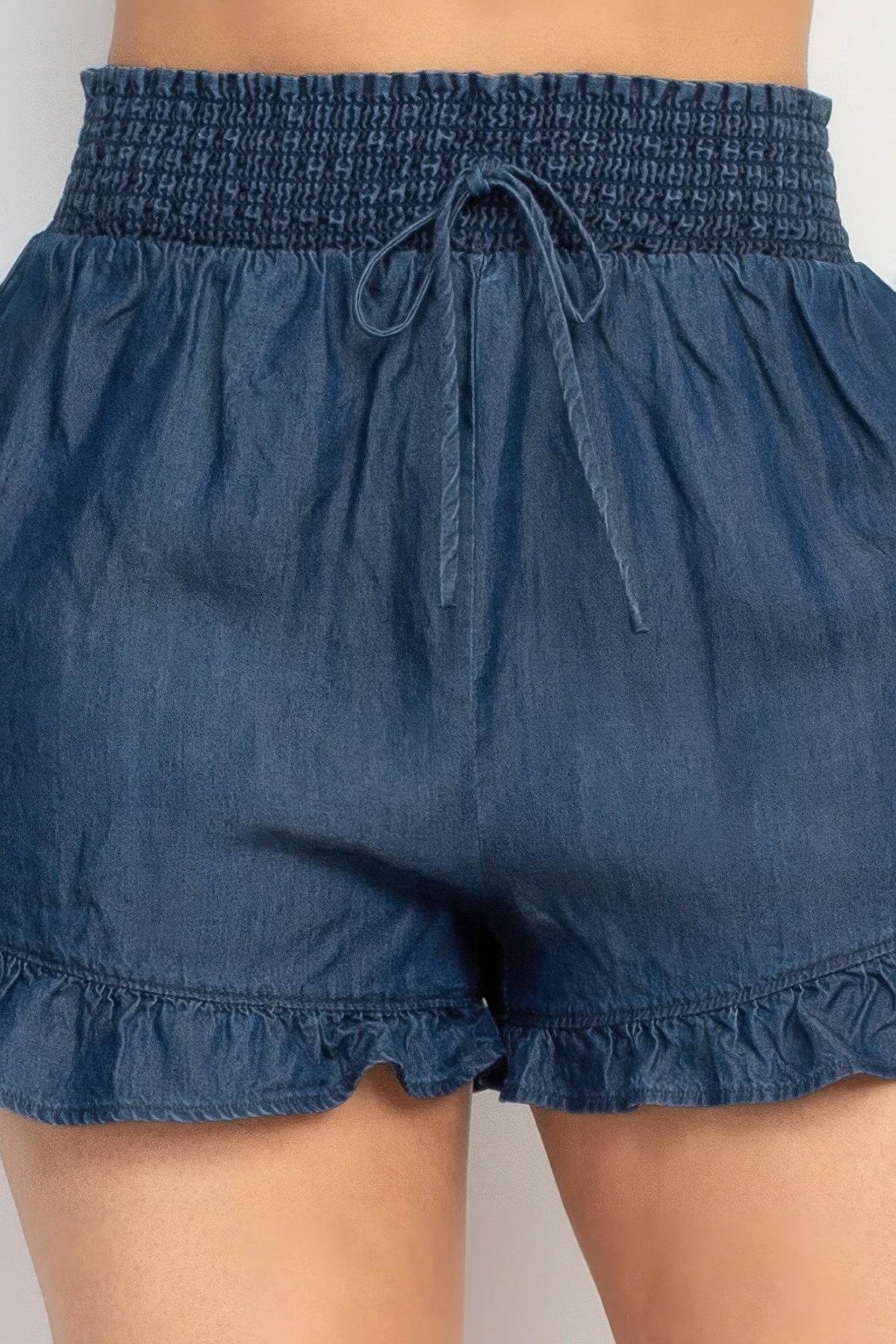 Why Choose Smocked Waist Ruffled Denim Shorts