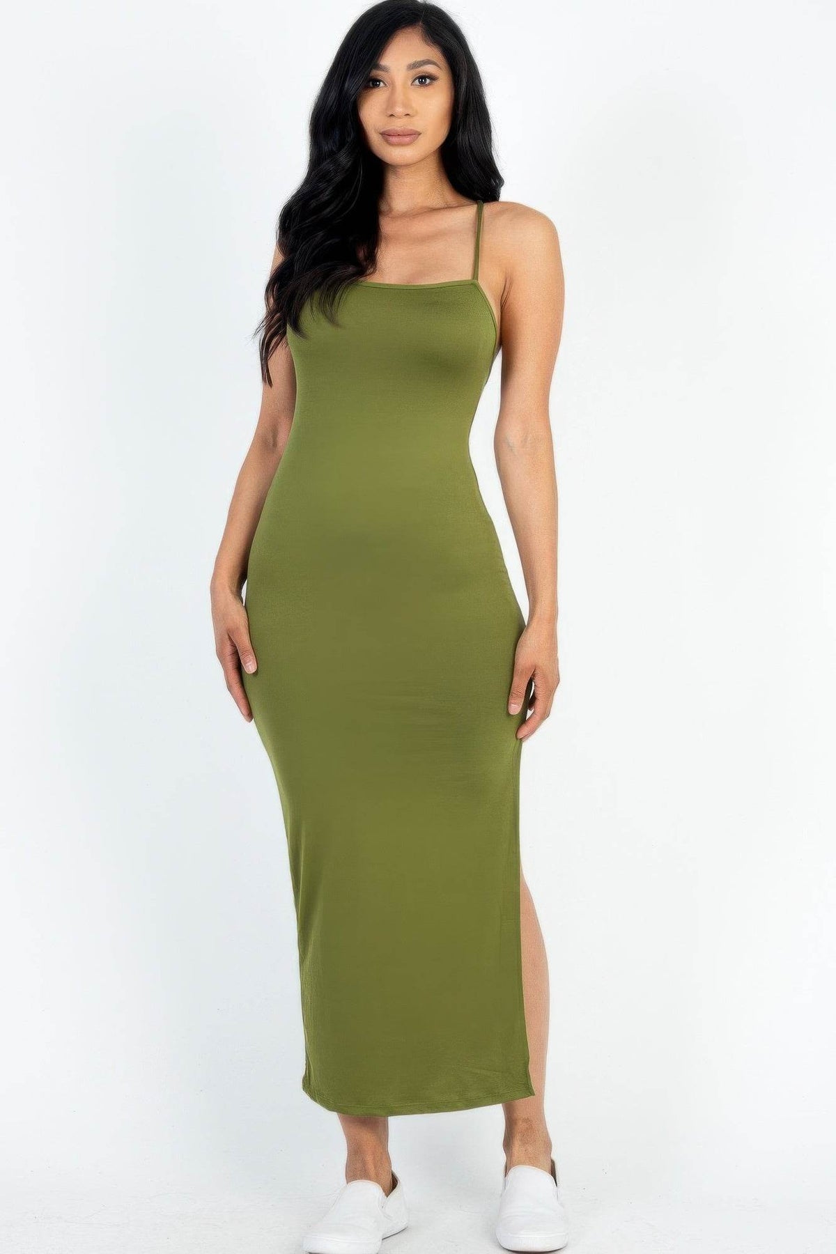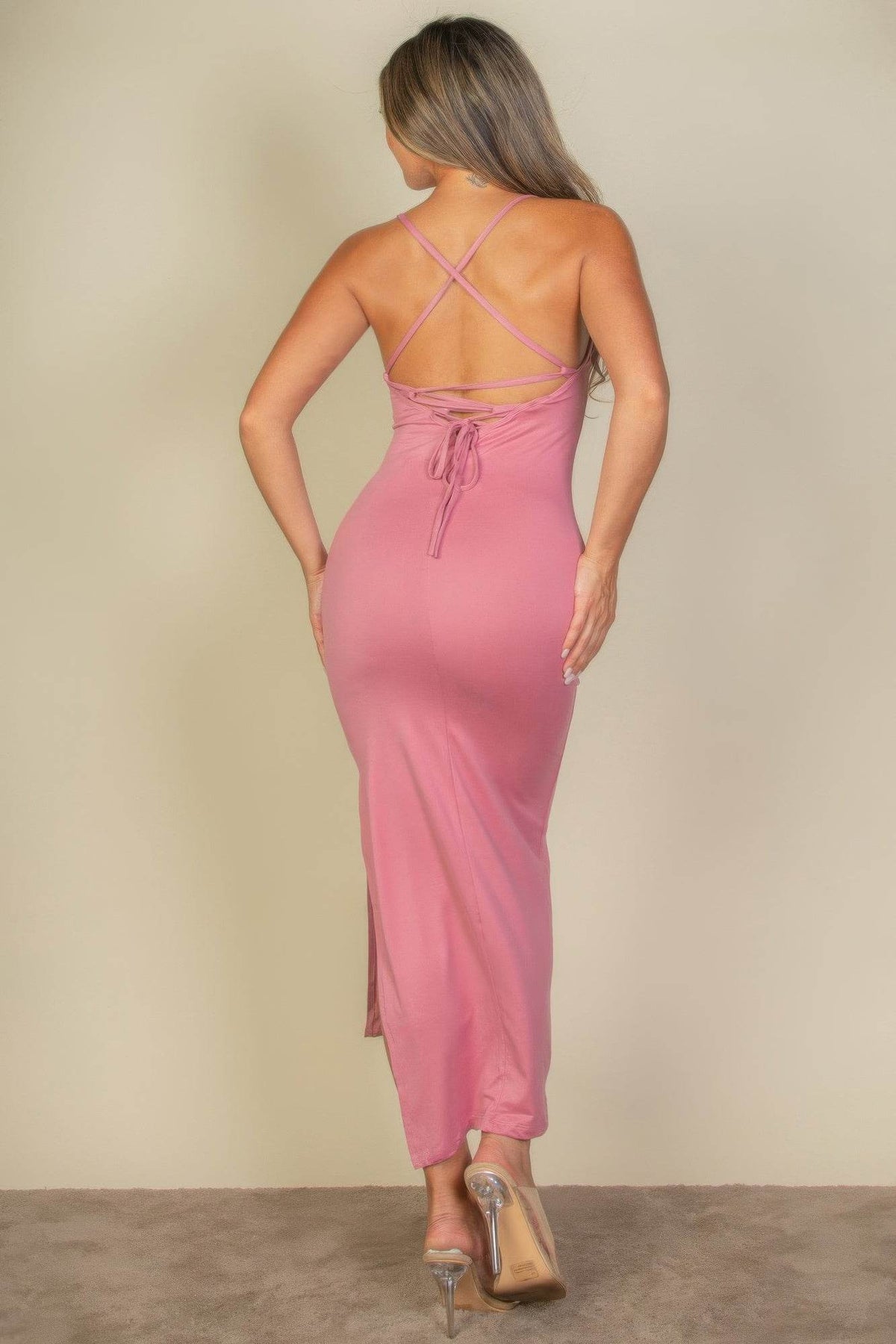 Crisscross Back Split Thigh Maxi Dress - Ebony's Shopping