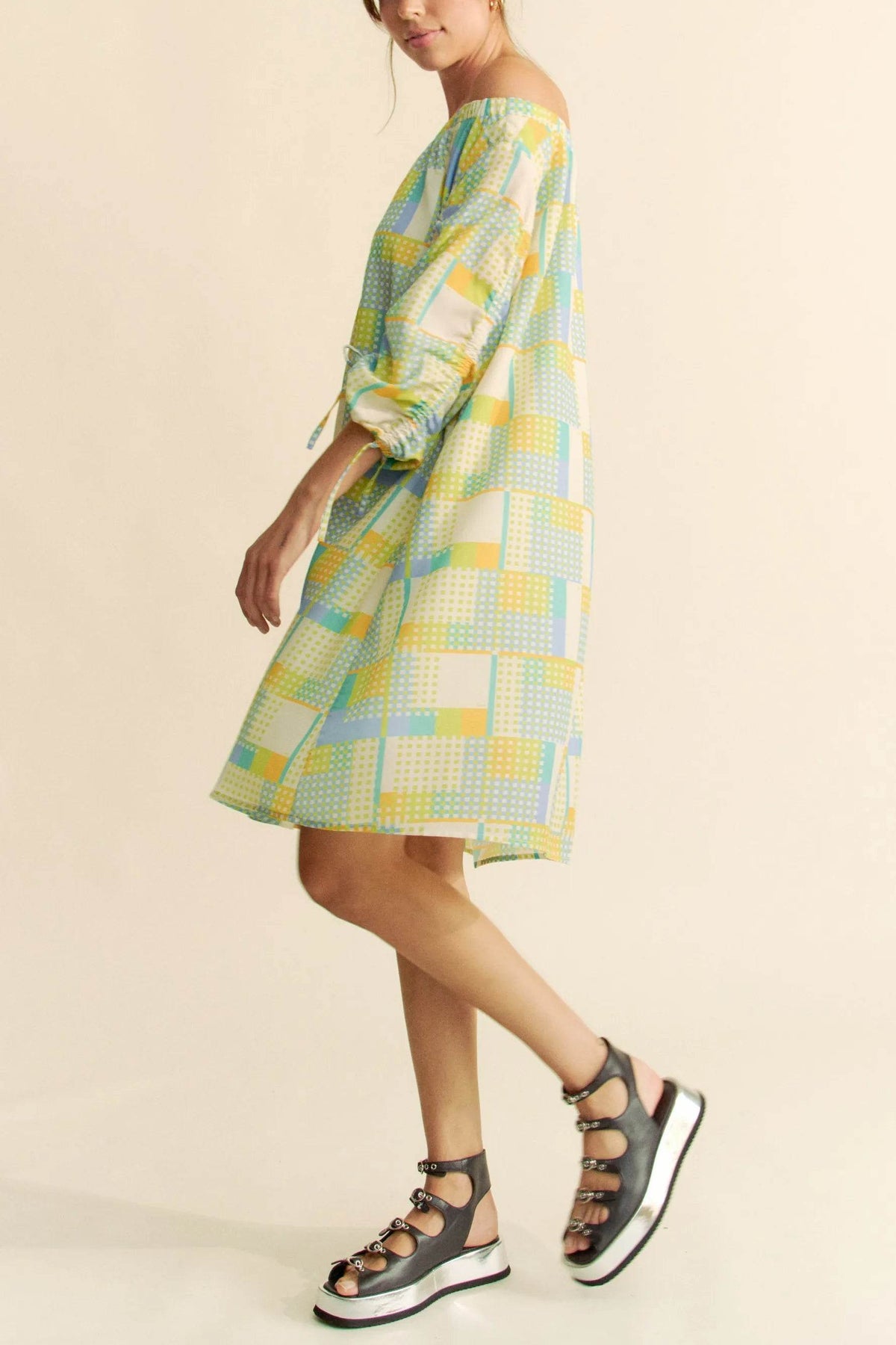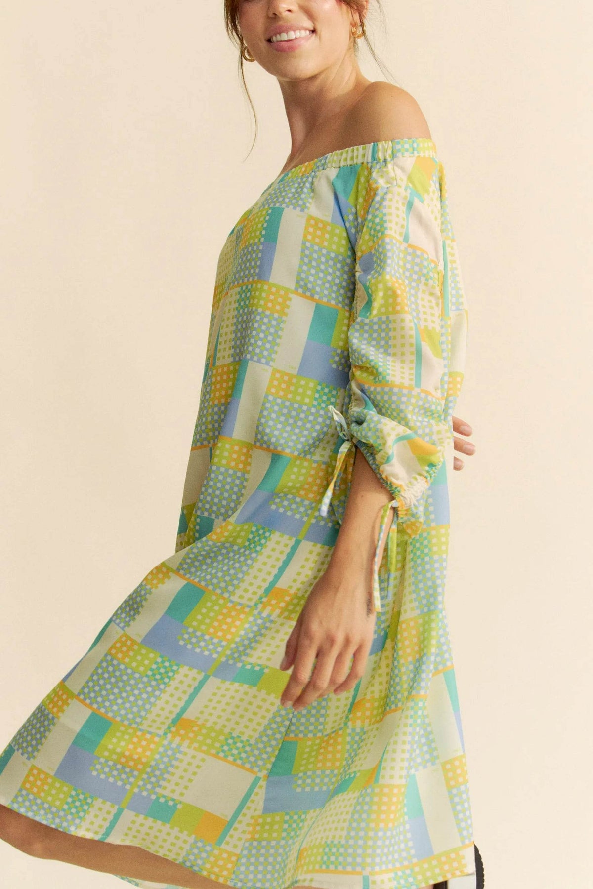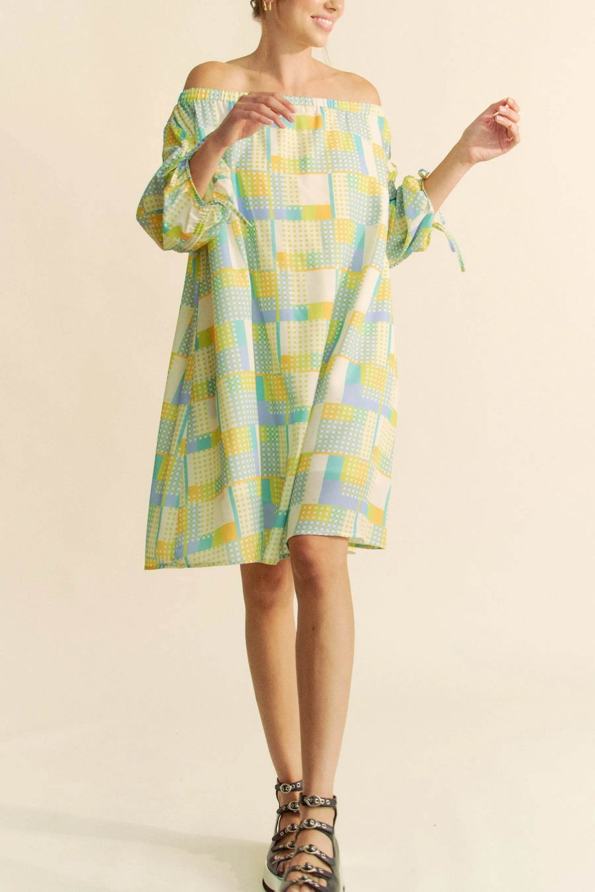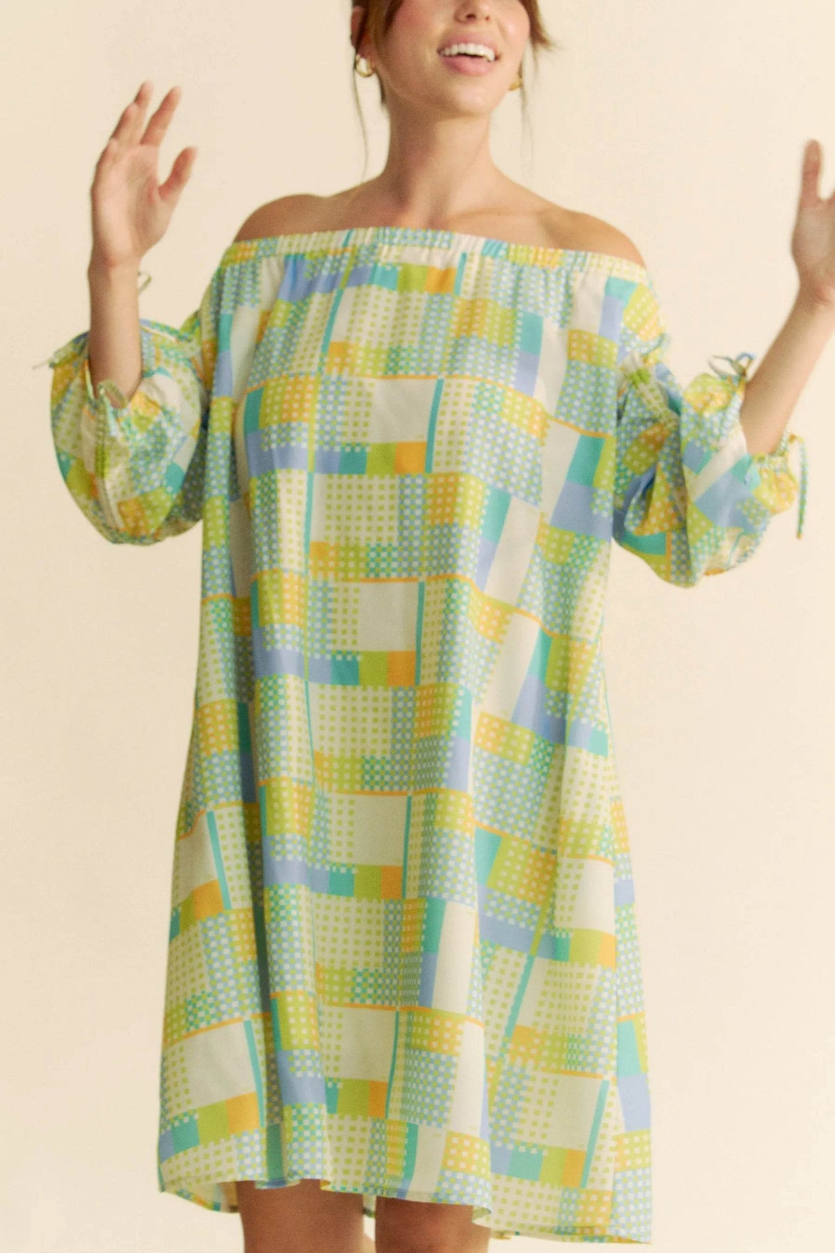 The Printed Off Shoulder Drawstring Sleeve Mini Dress is a chic and trendy option for a summer day out. Featuring an off-shoulder neckline and drawstring sleeves, this dress offers a stylish and flattering look. The printed design adds a whimsical touch, perfect for a beach vacation or brunch with friends. Stand out in this fashionable mini dress that combines comfort and style effortlessly.