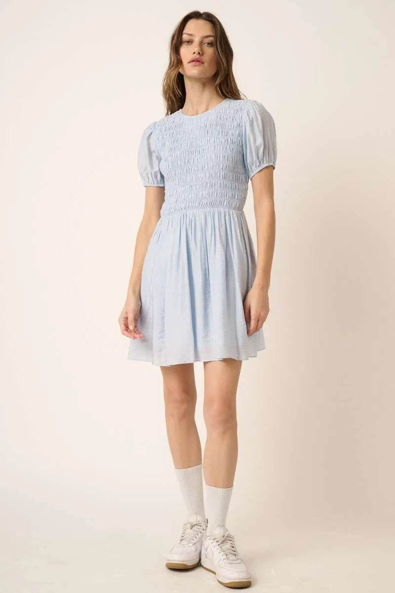 The smocking Detail Puff Sleeve Mini Dress is a charming and feminine choice for a stylish outfit. The smocked detail adds a touch of texture and interest to the dress. With puff sleeves, it exudes a romantic and trendy vibe. Pair this mini dress with some heels or flats for a chic and playful look!