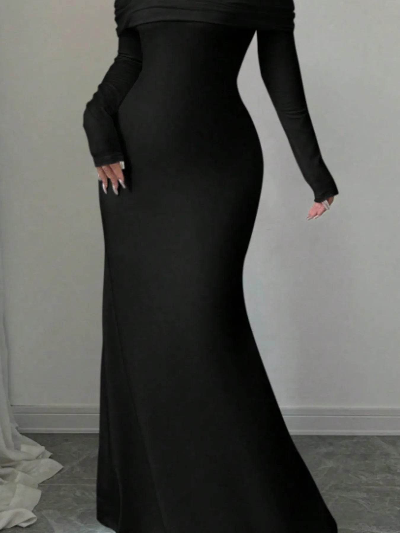 Off-Shoulder Long Sleeve Bodycon Maxi Dress - Ebony's Shopping