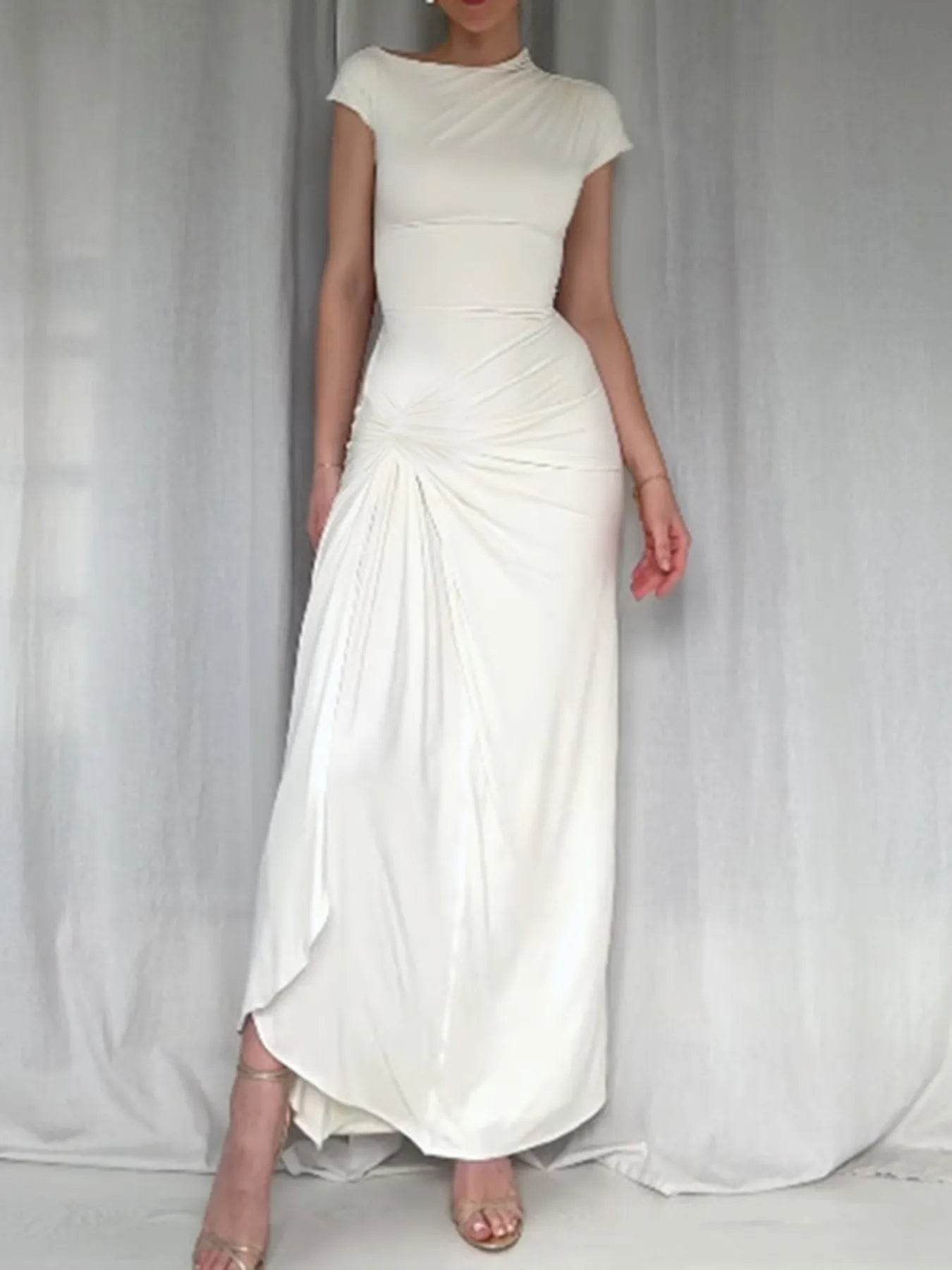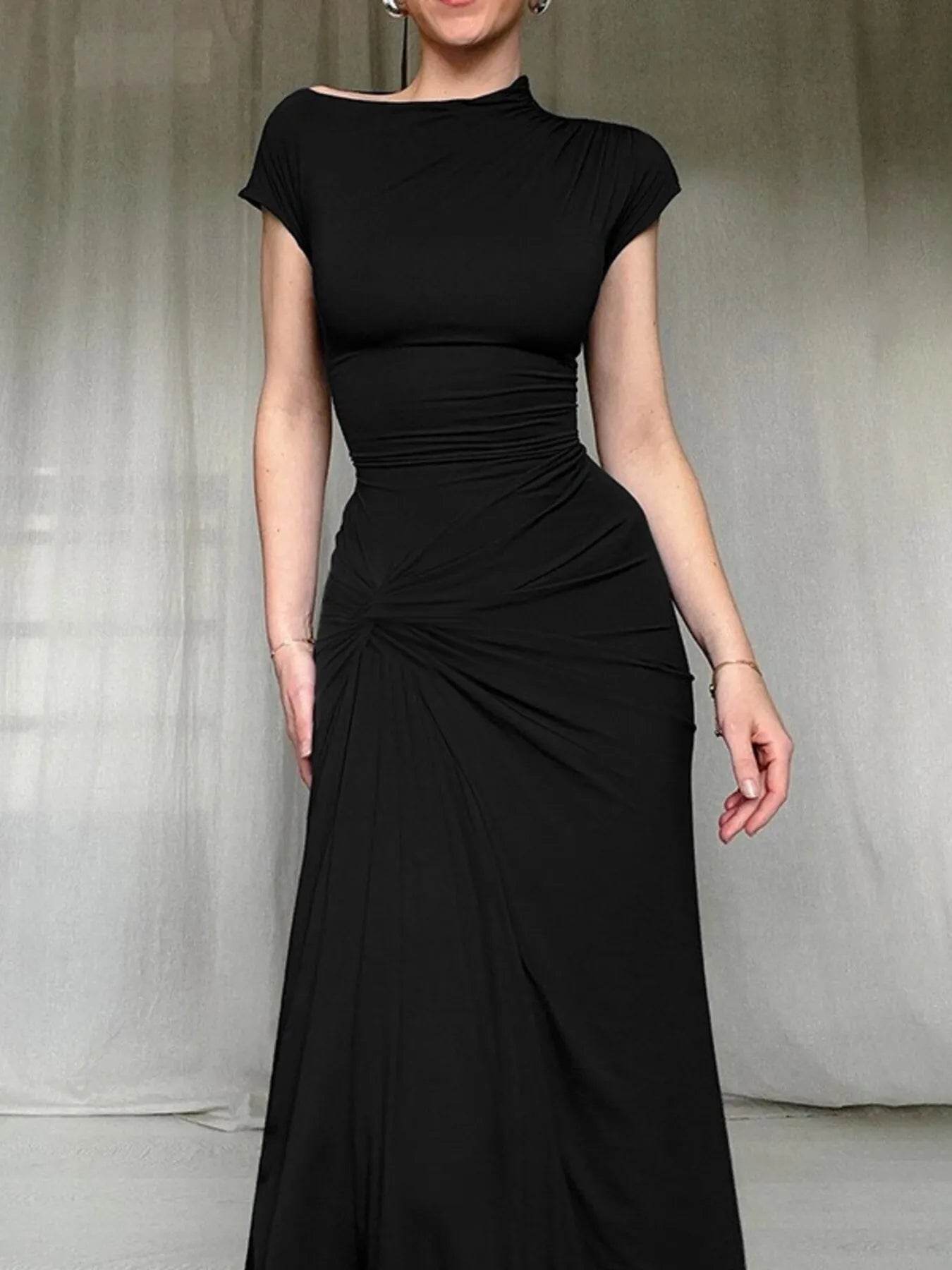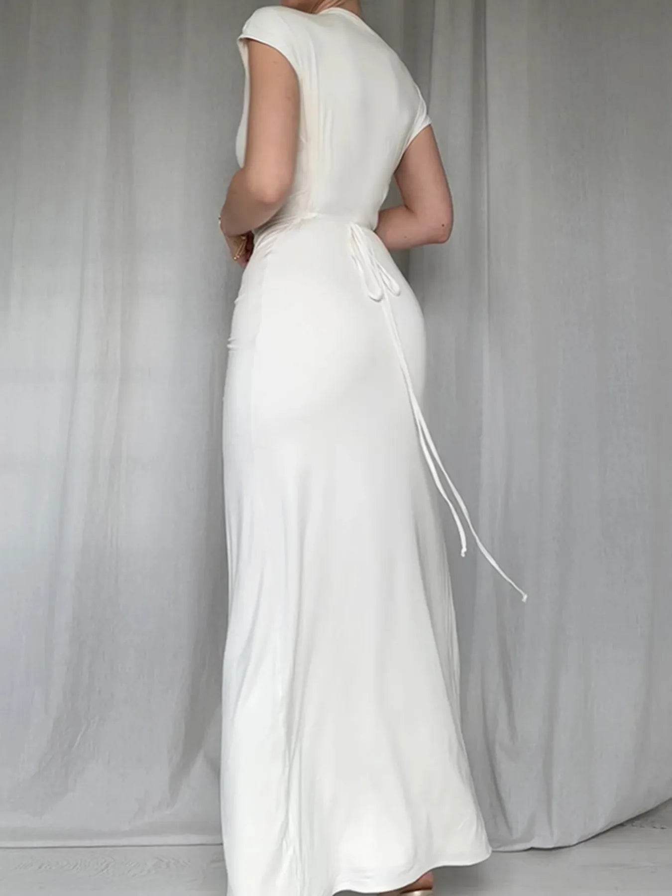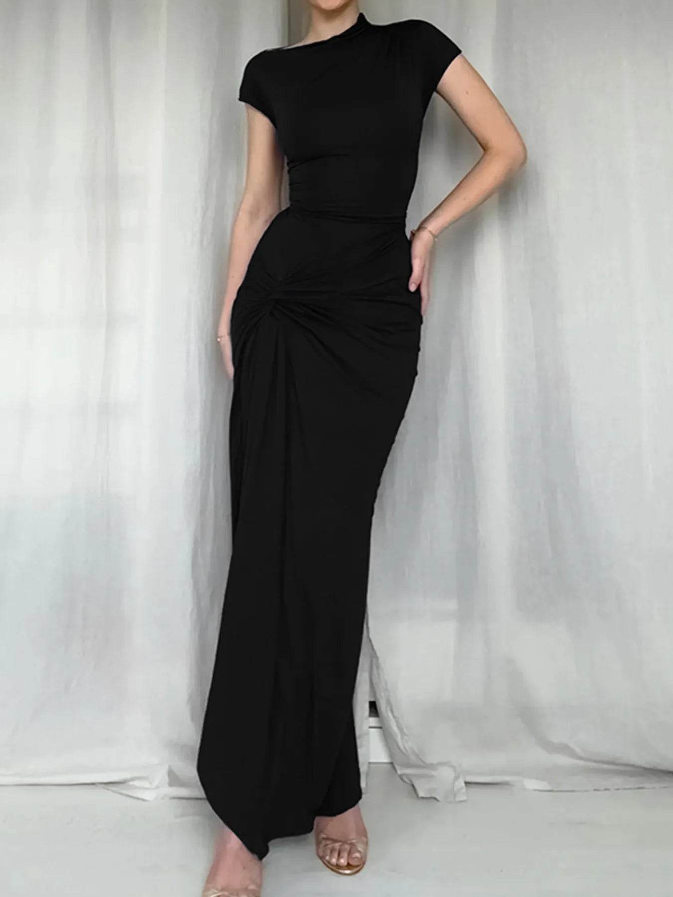 Ruched Slit Cap Sleeve Maxi Dress - Ebony's Shopping