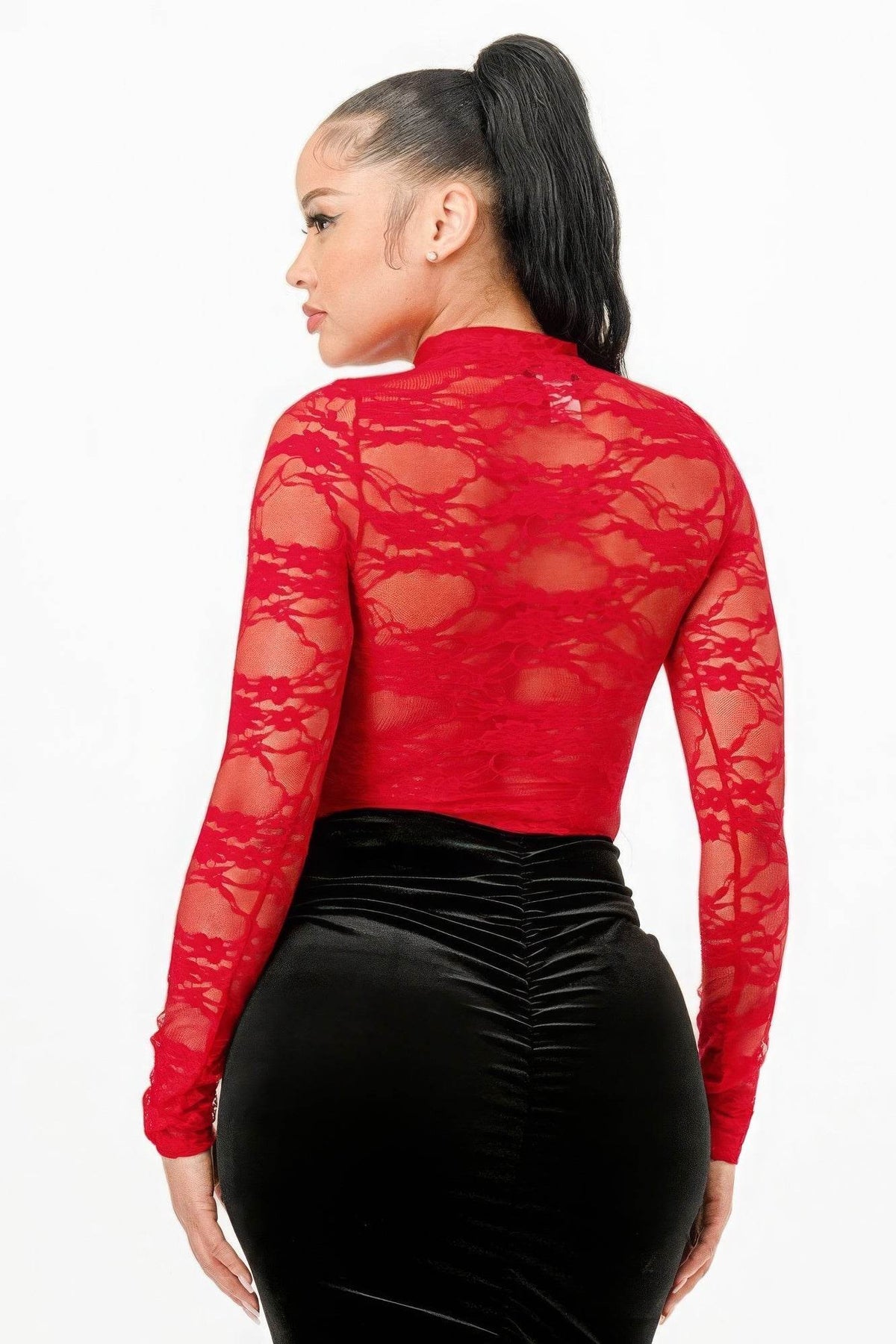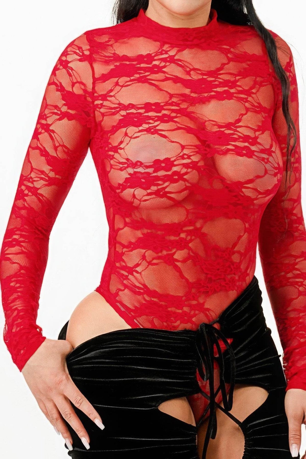 1. Lace Bodysuit: Experience the exquisite knitted lace that envelops your silhouette, offering a delicate and alluring touch. The long sleeves and stretch ensure a comfortable and flattering fit.