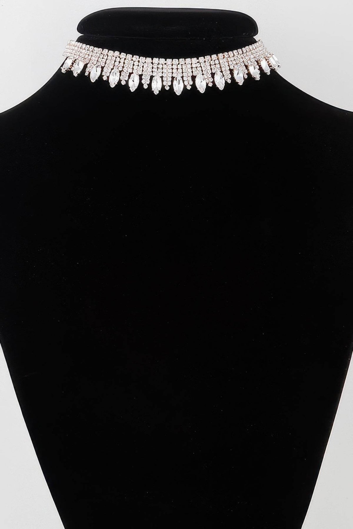 Make an unforgettable impression with the Luxury Rhinestone Drop Choker Necklace, a statement piece designed to captivate. Measuring approximately 12 inches, this elegant choker sits high on the neckline and features a dramatic drop adorned with radiant rhinestones. Its intricate design and brilliant sparkle bring an air of sophistication, perfect for evening events, parties, or elevated everyday wear. The close fit highlights the neckline, while the shimmering stones add bold glamour. Crafted to combine elegance with edge, this choker is the ultimate accessory for those who love to shine.