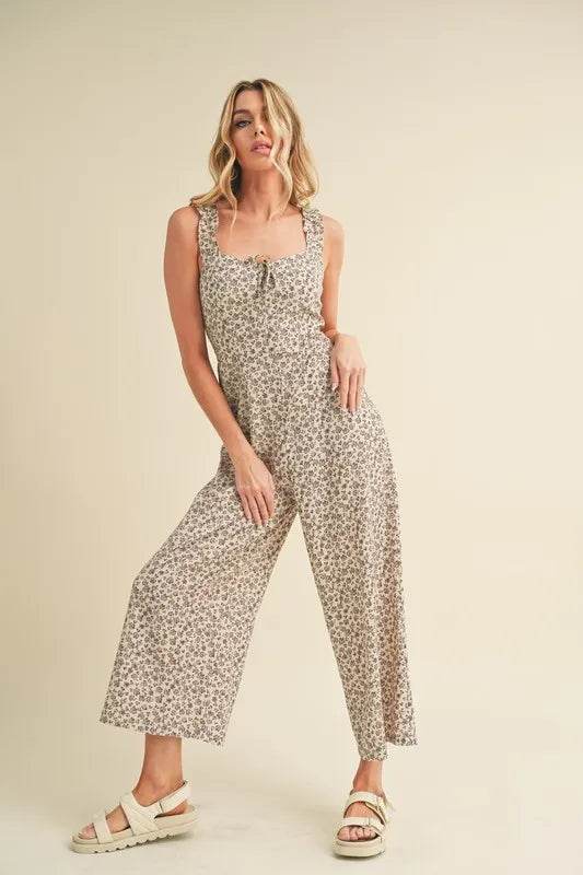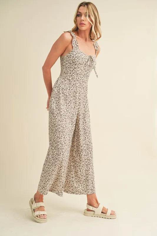 Aemi + Co Floral Sweetheart Neck Wide Leg Jumpsuit - Ebony's Shopping