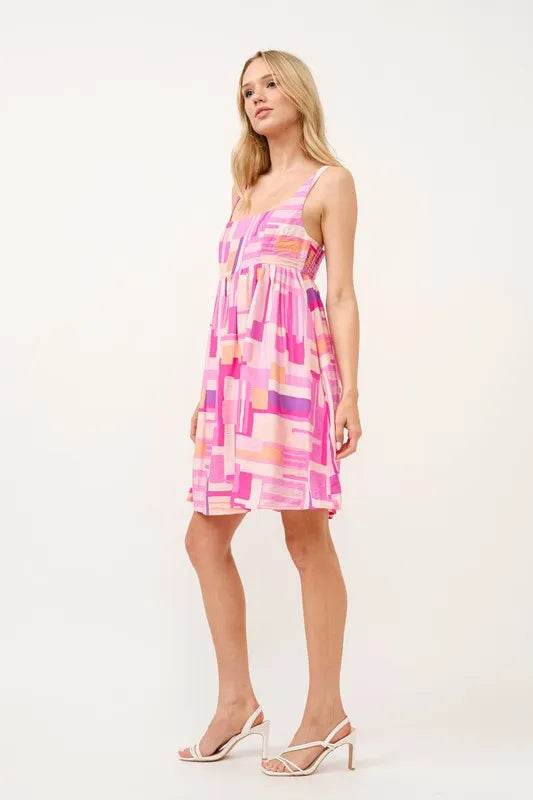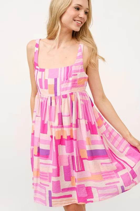 The geo printed square neck babydoll mini dress is a trendy and playful addition to your wardrobe. The square neckline adds a modern and chic touch to the dress. The geo print is edgy and eye-catching, perfect for making a statement. This babydoll mini dress is fun and flirty, making it ideal for a night out with friends or a casual day out. Pair it with ankle boots and a denim jacket for a cool and stylish look that will turn heads wherever you go.