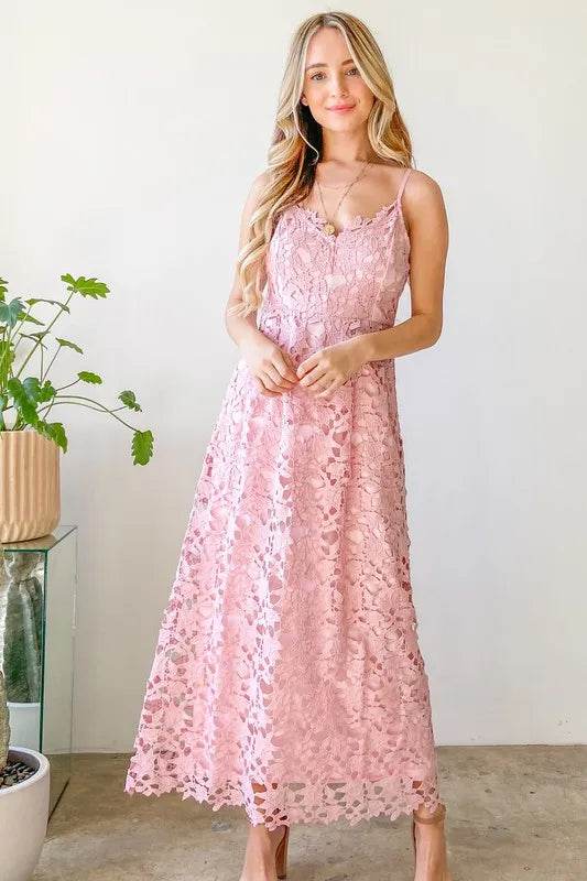The lace maxi cami dress is a timeless and elegant option for formal events or special occasions. The intricate lace detailing adds a delicate and romantic touch to the dress. The maxi length creates a stunning and graceful silhouette. This dress is perfect for weddings, evening soirees, or any event where you want to make a sophisticated statement. Pair it with heels and statement earrings for a glamorous look that is sure to turn heads.