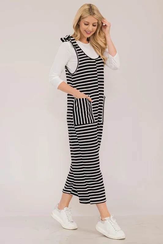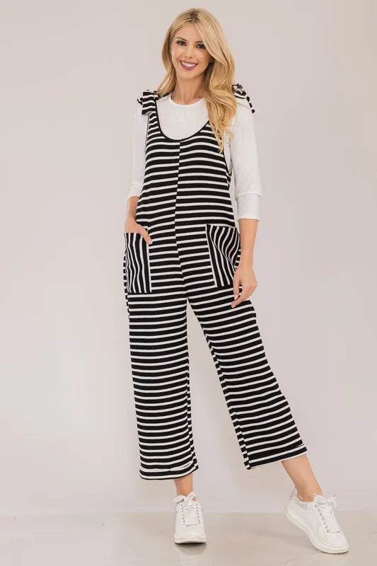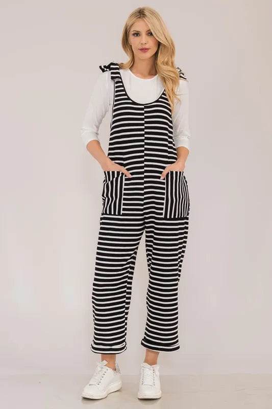 Celeste Full Size Striped Scoop Neck Overalls with Pockets - Ebony's Shopping