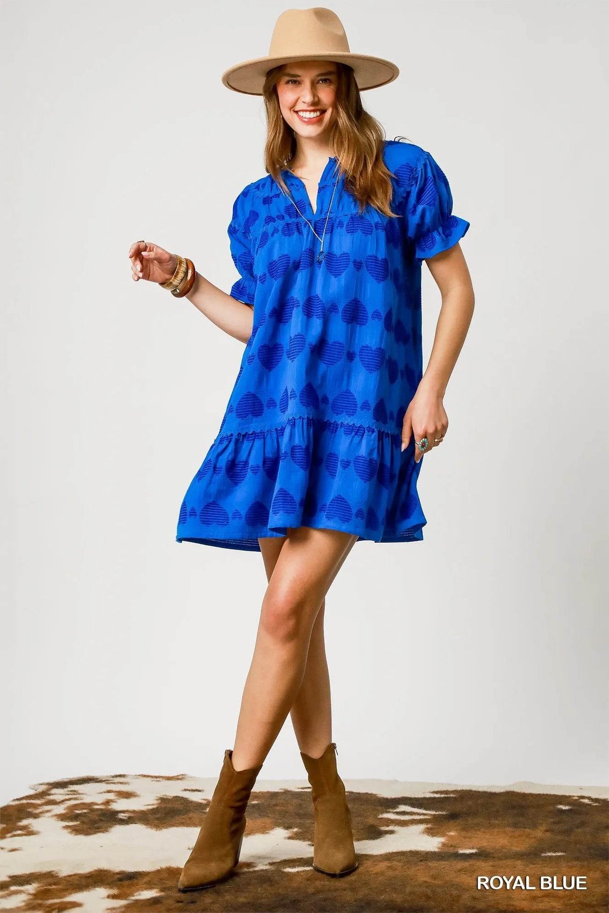 Umgee Heart Pattern Short Sleeve Ruffle Babydoll Dress