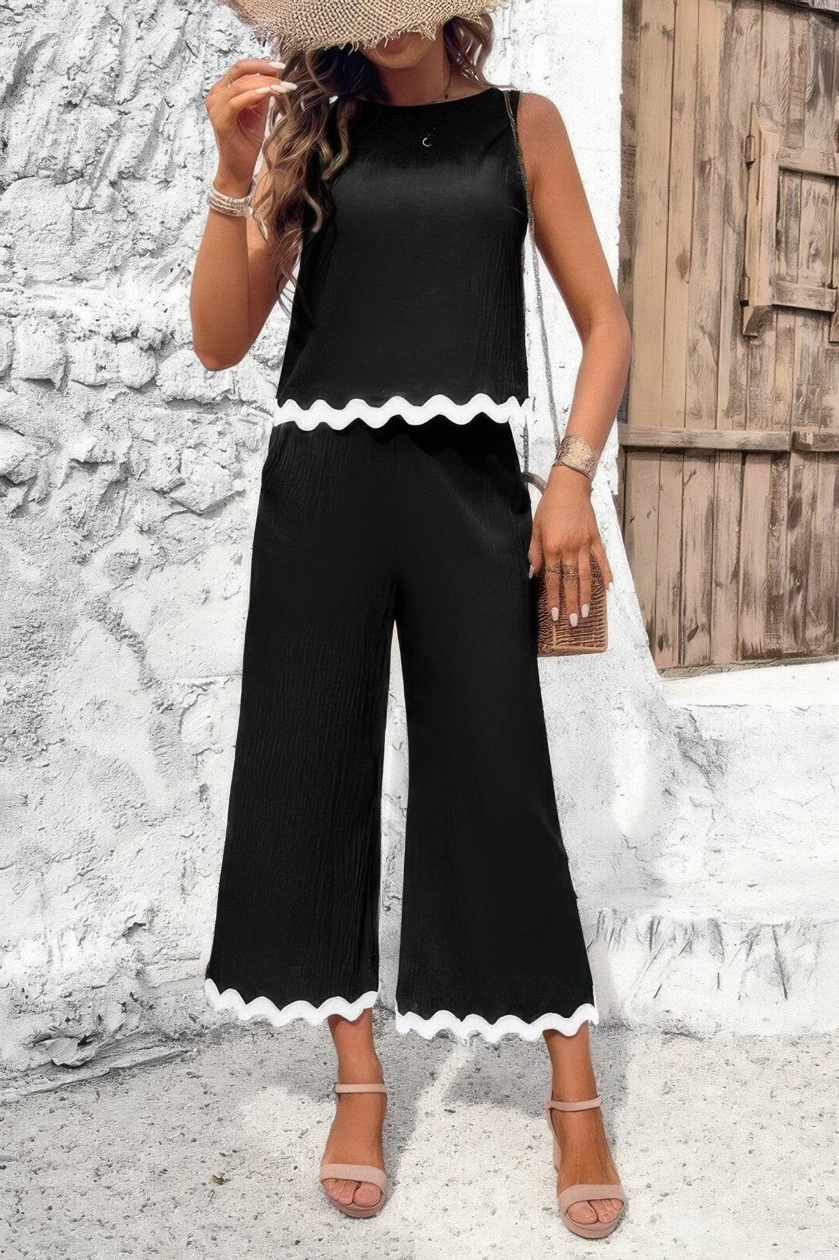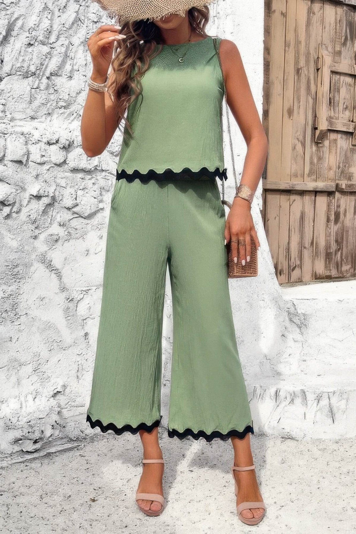Two Pieces Printed Sleeveless Pockets Sets - Ebony's Shopping