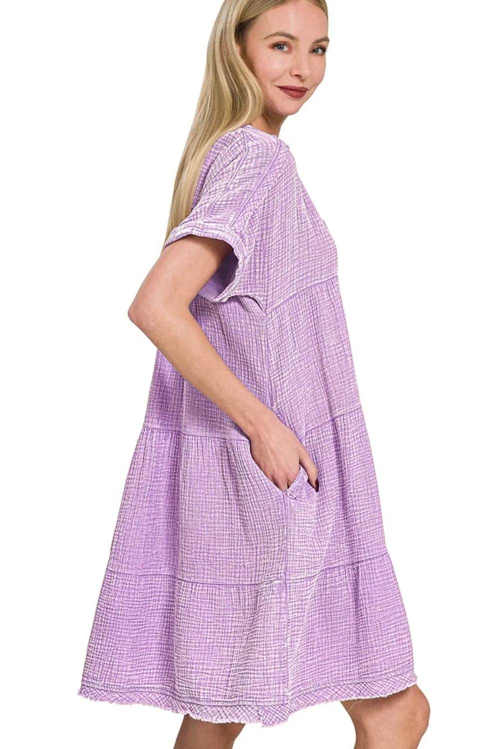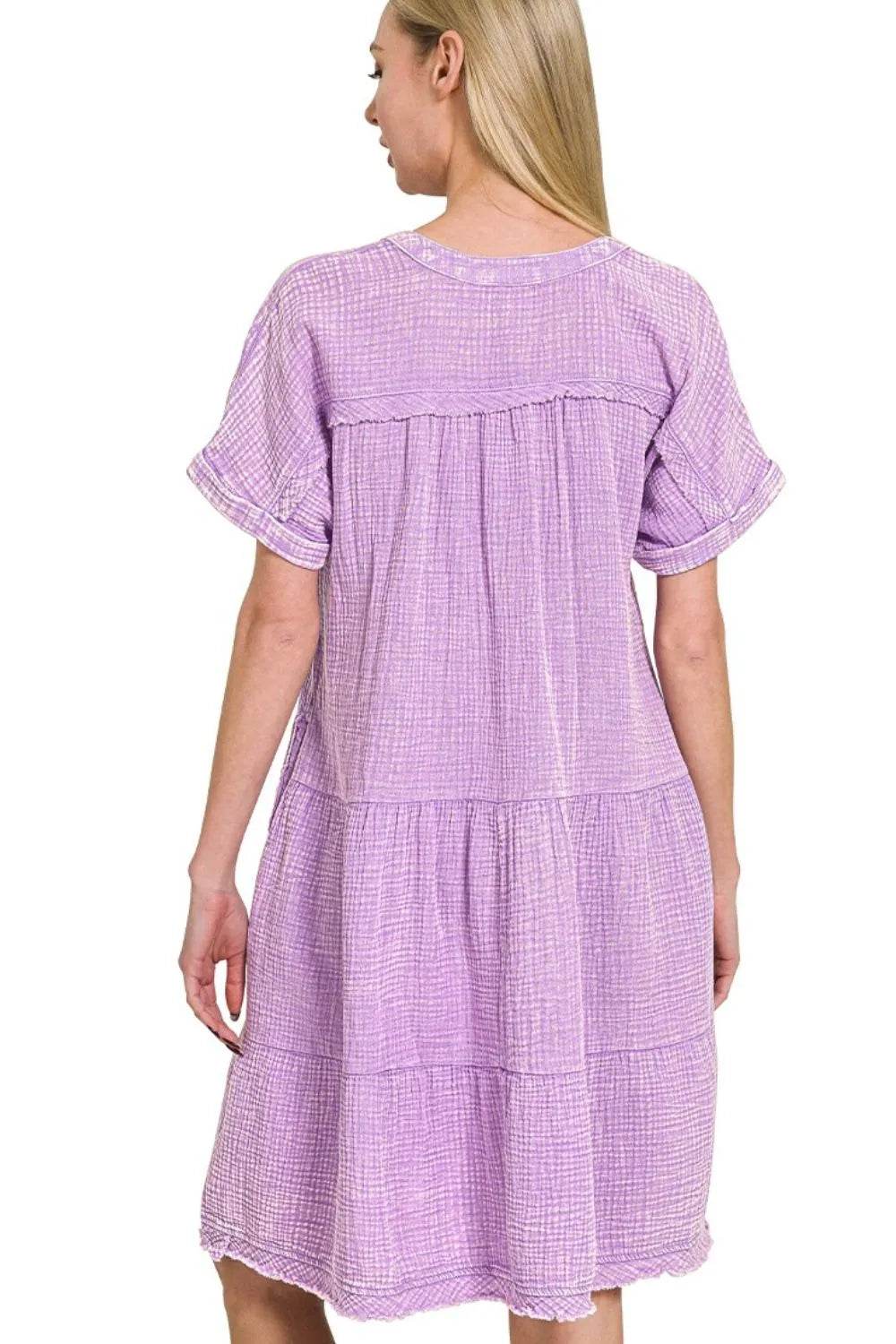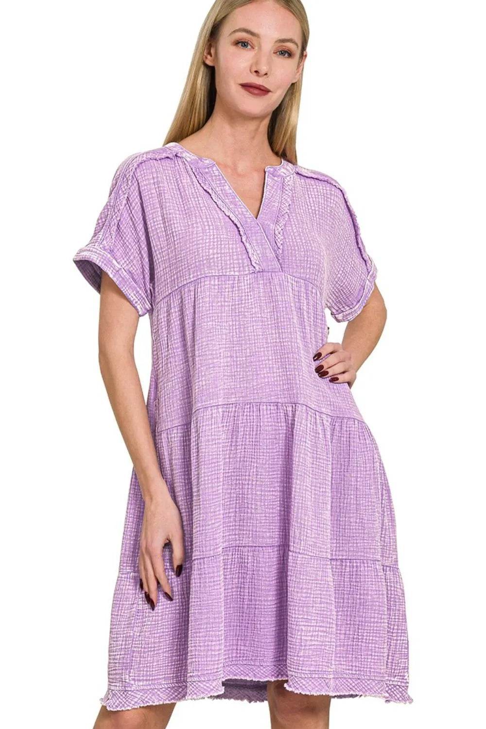 The Washed Double Gauze Raw Edge Notched Dress is a stylish and versatile piece with a unique design. Made from double gauze fabric with a washed finish, this dress is soft and comfortable to wear. The notched detailing and raw edge finish add a touch of modernity and edge to the overall look, making it a chic option for any casual occasion.