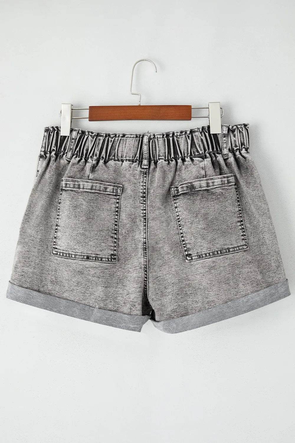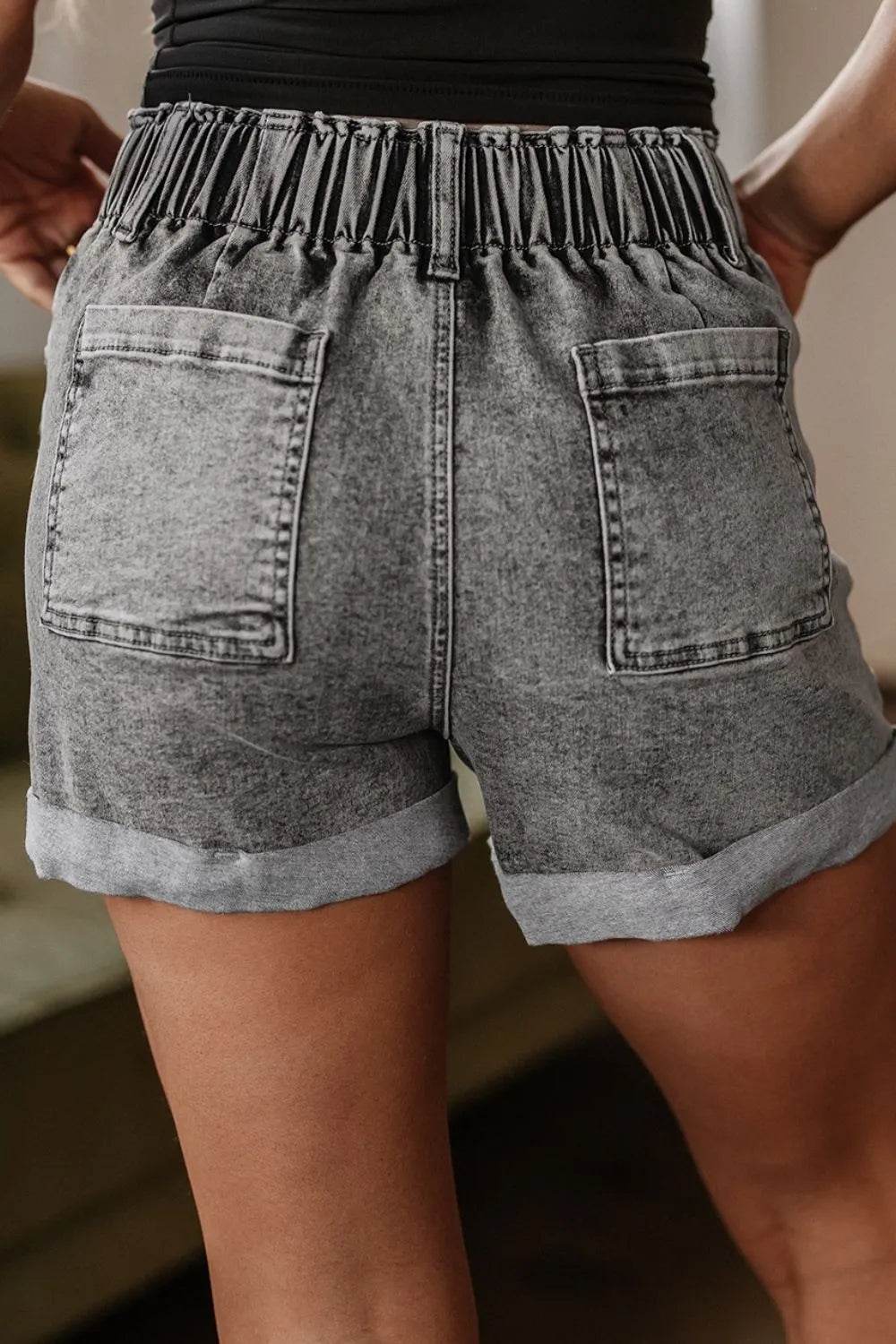 Zipped Cuffed Edge Denim Shorts - Ebony's Shopping